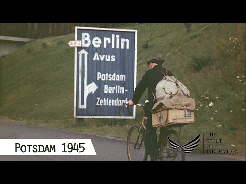 „Impressions filmed on the road from Berlin to Potsdam, just after the end of World War Two from Potsdam, close to Berlin (south-west). These images must have been shot in or after July 13th in 1945.“