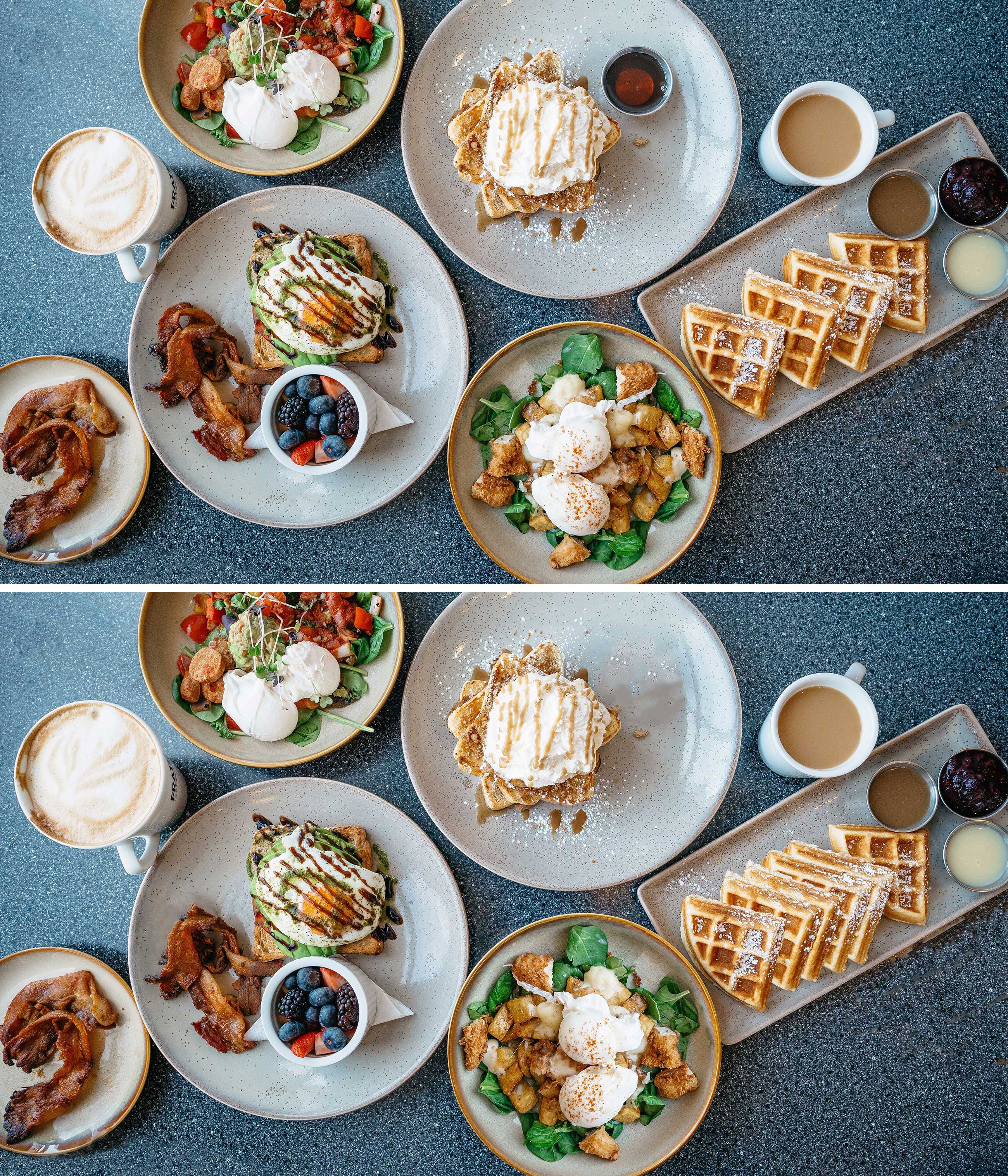 Auch heute gibt es mal wieder keinen tageaktuellen Aufhänger für meine Motivwahl, dafür wird aber ein Wochenend-taugliches, richtig feudales Frühstück aufgetischt! Oder ist das Nachmittags-Futter? Wie dem auch sei: Waffeln gehen immer! Neben Süßem und Gesundem haben sich aber auch sieben Unterschiede ins Bild geschlichen. Kannst du alle finden?
