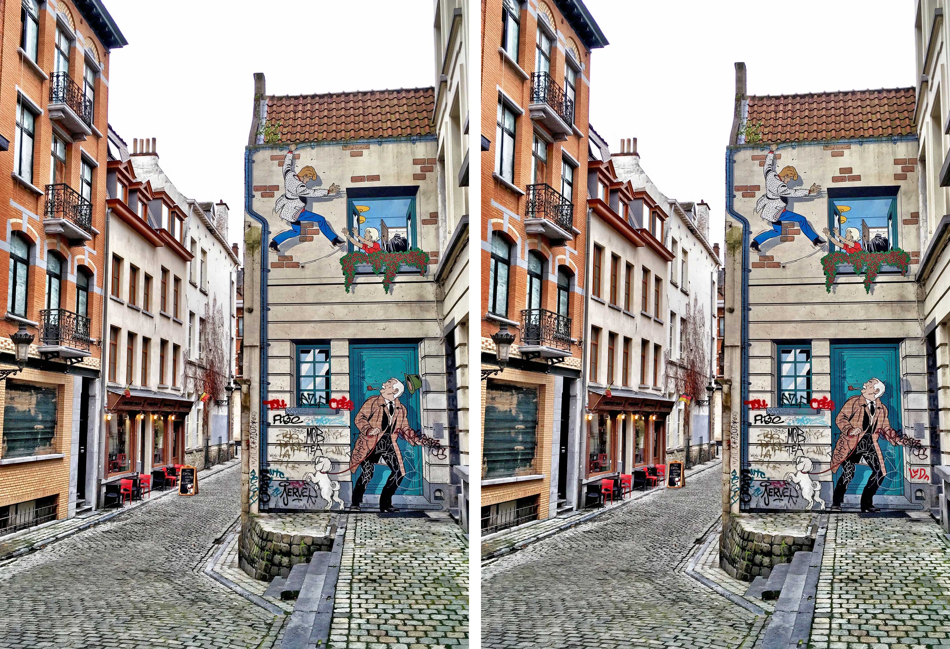 Am heutigen 21. Juli wird der Nationalfeiertag in Belgien begangen! 1831 wurde an diesem Tag der erste belgische König, Leopold I, vereidigt. Toll! Ich feiere liebe belgische Pommes, die mit deutlich höherer Wahrscheinlichkeit auch mir schmecken als Otto-Normal-Kartoffelstangen, oder vor allem die vielen Comics, die in unserem Nachbarland ins Leben gerufen worden sind. Entsprechend habe ich mich auch gefreut, bei der Suche nach einem passenden Motiv für heute auf dieses Bild mit den auf einer Hausfassade aufgemalten Comic-Motiven zu entdecken. Ich habe noch neun Unterschiede beigesteuert, die es für euch zu finden gilt.