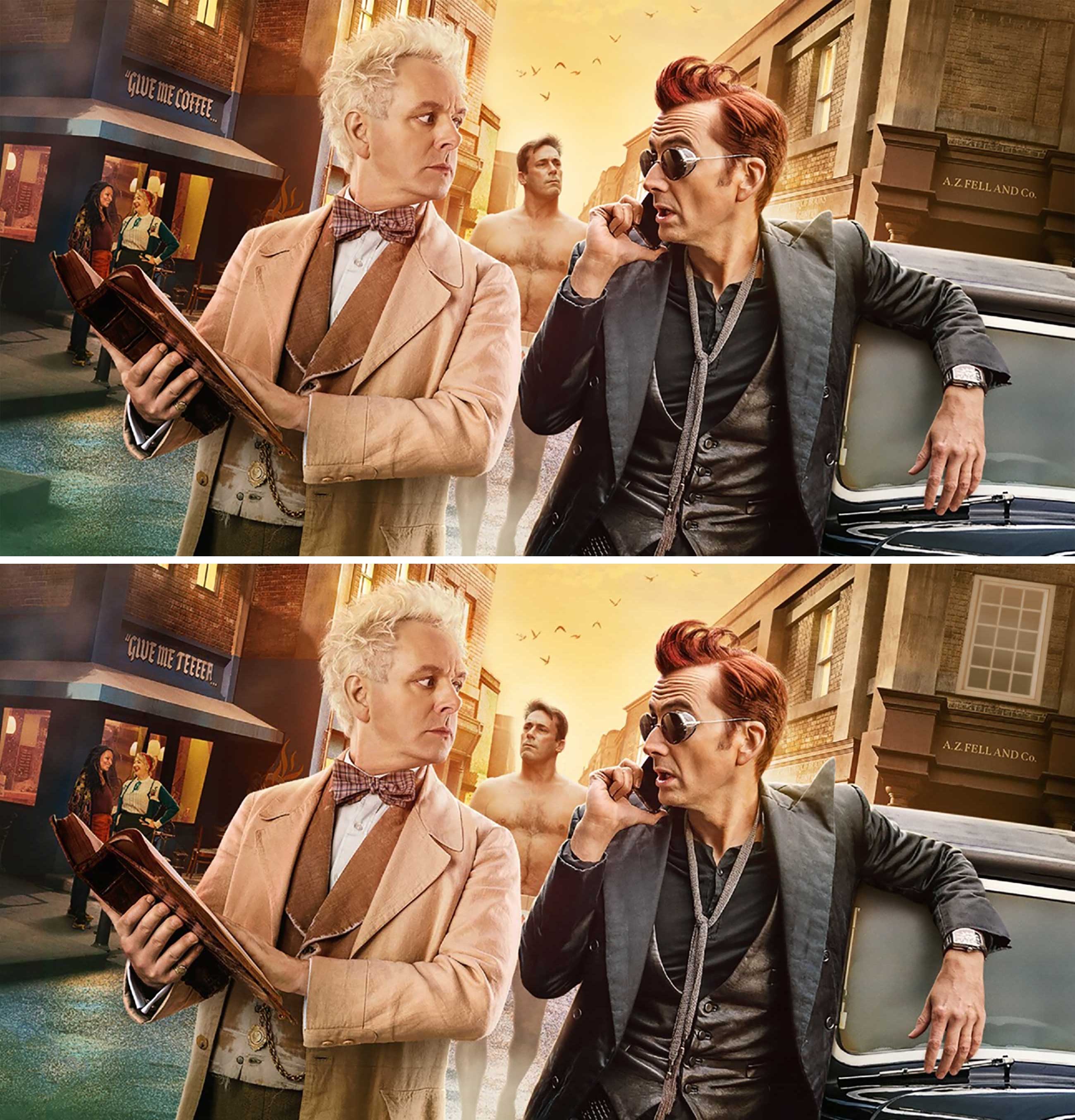 Heute erscheint die zweite Staffel der Serie „Good Omens“ auf Amazon Prime Video! Das erinnert mich daran, dass ich die erste noch immer auf der Watchlist habe… Nun ja, mein Fehler. Einige mehr gibt es für euch! Zwischen den vermeintlich identischen Bildern gibt es zwar keine 666 aber immerhin sechs Unterschiede zu finden. Unterstützung durch Engelchen und Teufelchen auf den Schultern ist erlaubt.