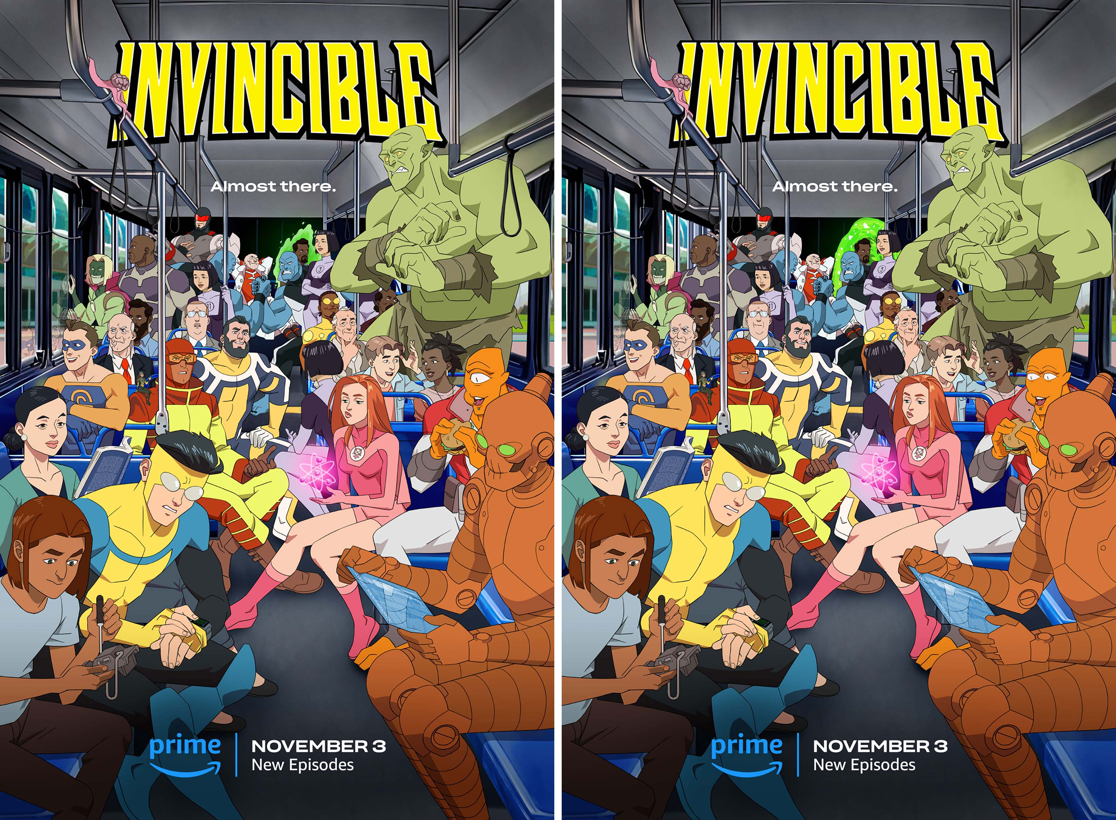 Heute startet die zweite Staffel von „Invincible“ auf Amazon Prime Video. Die erste Staffel der TV-Adaption einer Graphic Novel von Robert Kirkman hat mir sehr gefallen und ich bin gespannt, wie es weiter geht. Gespannt bin ich auch, wie viele der sieben Unterschiede ihr entdecken könnt, die ich zwischen den beiden Bildern eingebaut habe. Viel Spaß beim Suchen!