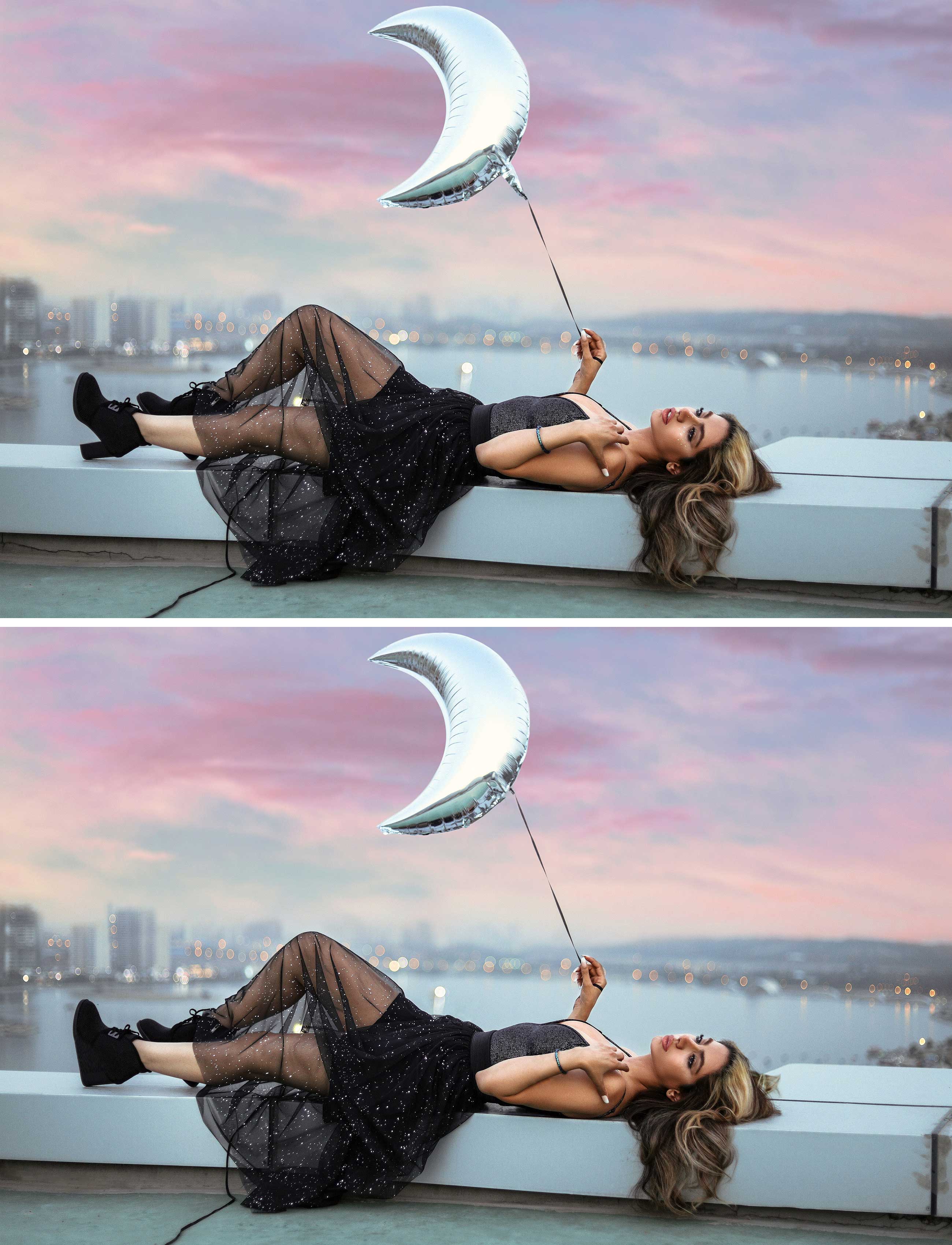 Eine lasziv vor einem Hafen liegende Dame mit Mondballon in der Hand – ein wirklich sehr ästhetisches Bild von Nojan Namdar, wie ich finde. Darin versteckt habe ich dieses Mal 10 Unterschiede, die es zu entdecken gilt. Könnt ihr sie alle finden? Viel Spaß (und Erfolg) bei der Suche!