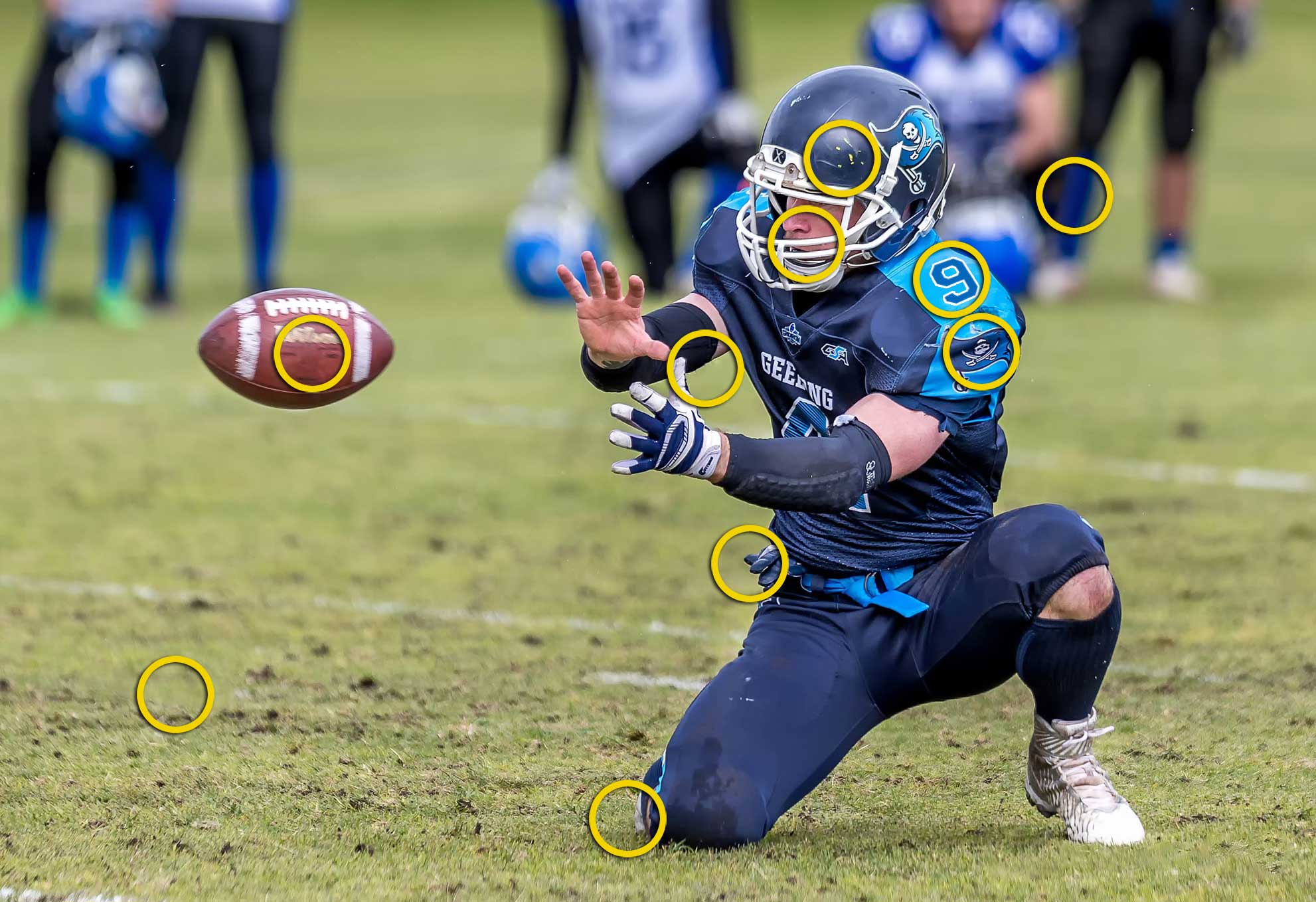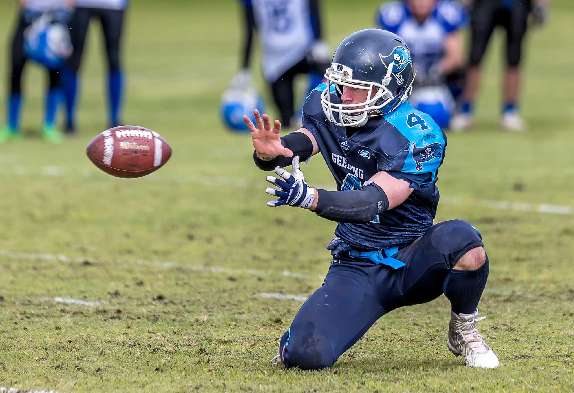 10. Ein Spieler im Hintergrund hat einen Socken hochgezogen.