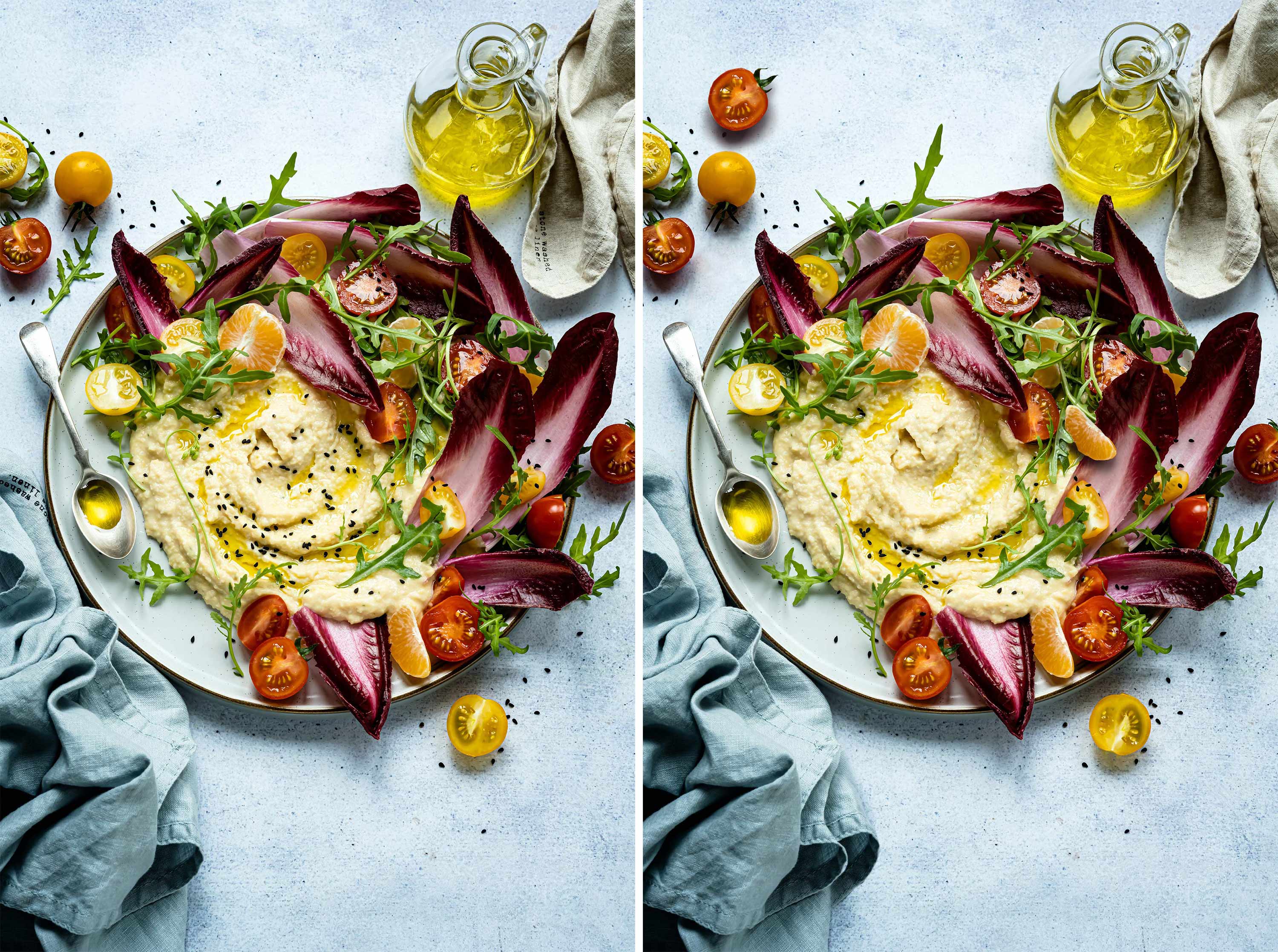Nein, auch heute habe ich keinen wirklich aktuellen Aufhänger finden können. Zumindest keinen öffentlichen. Ich habe aber den „gesunden Februar“ gestartet, entsprechend passt so ein salathafter Hummusteller doch ganz gut, oder nicht? Okay, etwas viel Fett-Anteil, vermutlich „darf“ ich den auch nicht wirklich essen, aber hey – vier Tage bereits rum, fehlen noch 24…. Euch fehlen noch exakt zehn – 10 Unterschiede gibt es nämlich zwischen den beiden Bildern. Viel Spaß beim Suchen!