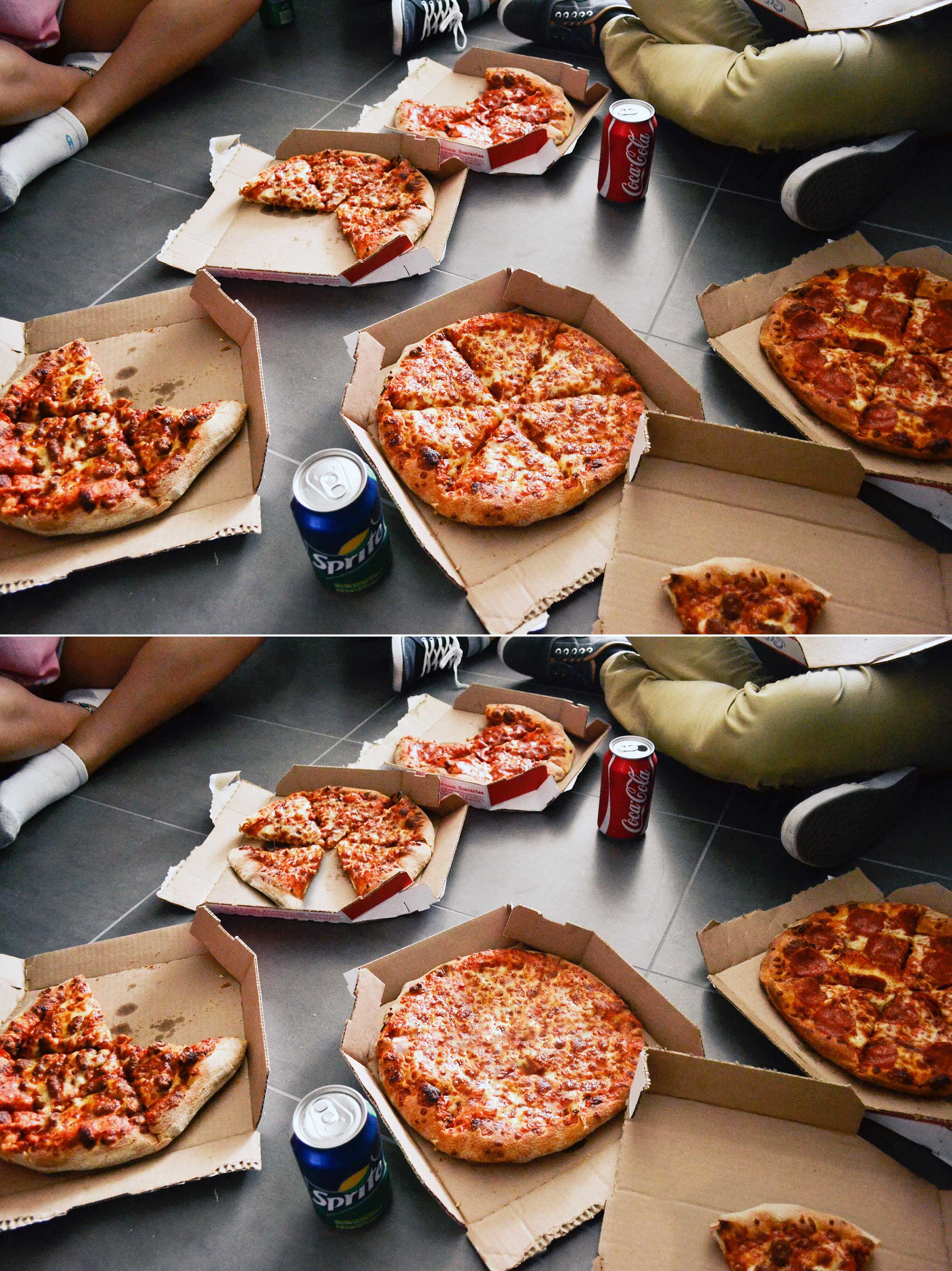Pizza geht ja eigentlich immer. Okay, außer man macht einen „gesunden Februar“, wie ich gerade… Ja, da helfen derartige Bilder nicht unbedingt bei. Aber ich hatte mir ob ganz guter Bodyfat-Inzidenzwerte eh eine Belohnung versprochen. Der Februar endet für mich heute, so dass ich morgen Gebrauch von einem Pizzeria-Gutschein machen kann, der nur bis Sonntag gültig ist. Den MUSS ich also einlösen, geht gar nicht anders… Ihr müsst natürlich gar nichts, könnt aber bis zu 10 Unterschiede zwischen diesen beiden vermeintlich gleichen Motiven ausmachen. Wie viele schafft ihr?