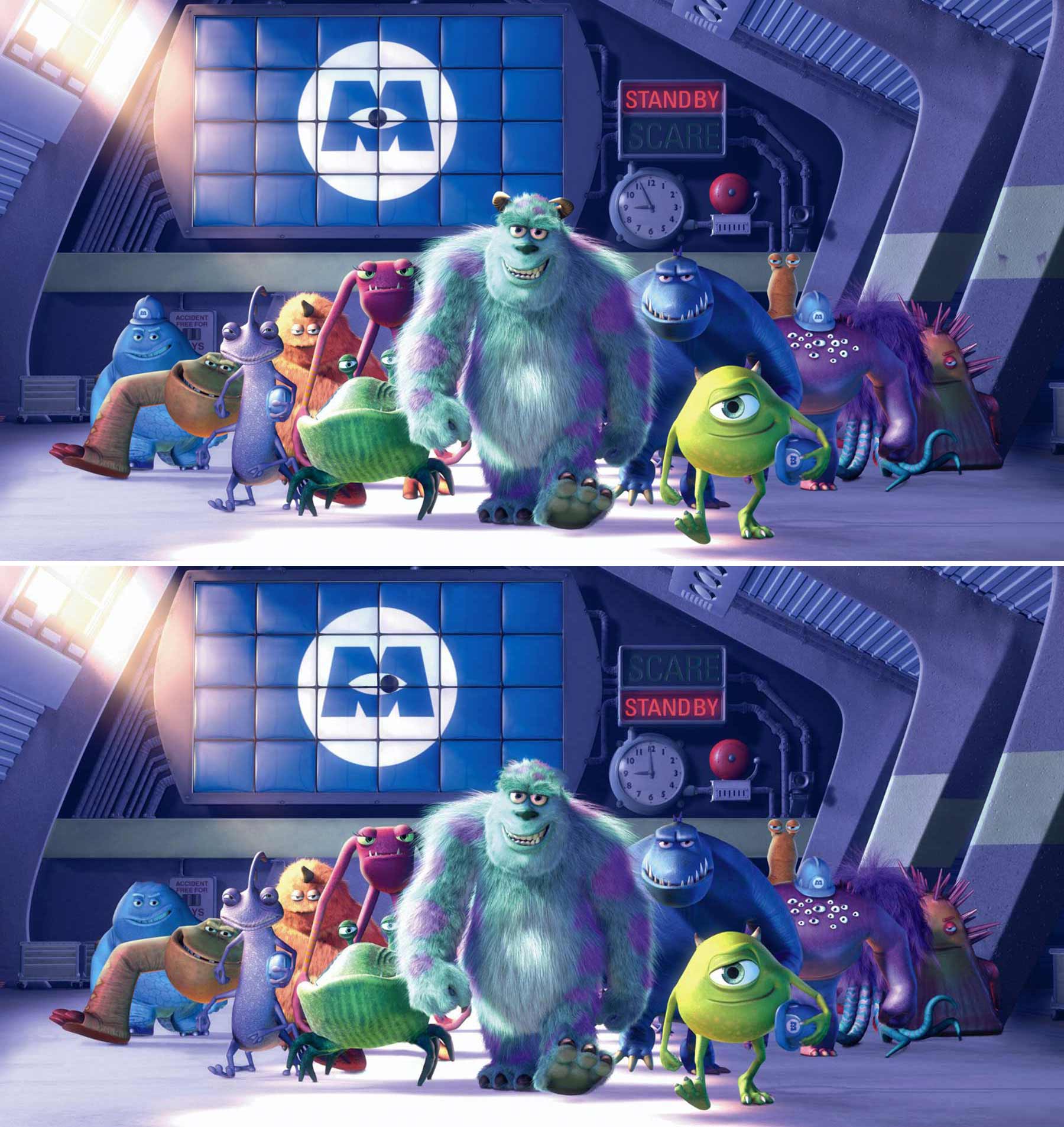 Mike und Sullivan sind wieder da! Eigentlich sollte heute die neue Disney-Serie „Monsters At Work“ auf Disney+ starten, in der inhaltlich an die Geschehnisse im Animationsfilm „Die Monster AG“ angeknüpft wird (aber sie wurde auf nächsten Mittwoch verschoben). Entsprechend habe ich für heute mal ein Motiv aus dem 2001er Film (auch schon wieder 20 Jahre her, verdammt…) für den „FehlerFindFreitag“ ausgewählt.