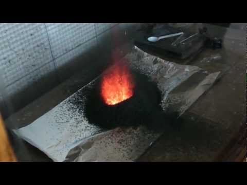 Kill it with… um… Water?! Der Chemie-Unterricht damals war immer am interessantesten, sobald es um Experimente ging. Eine tolle Reaktion könnt ihr hier sehen, wo NH4Cr2O7 mit HgSCN gemischt wird. Heraus kommt nicht nur ein großer Feuerspeiender Vulkan sondern auch eine kleine Überraschung…