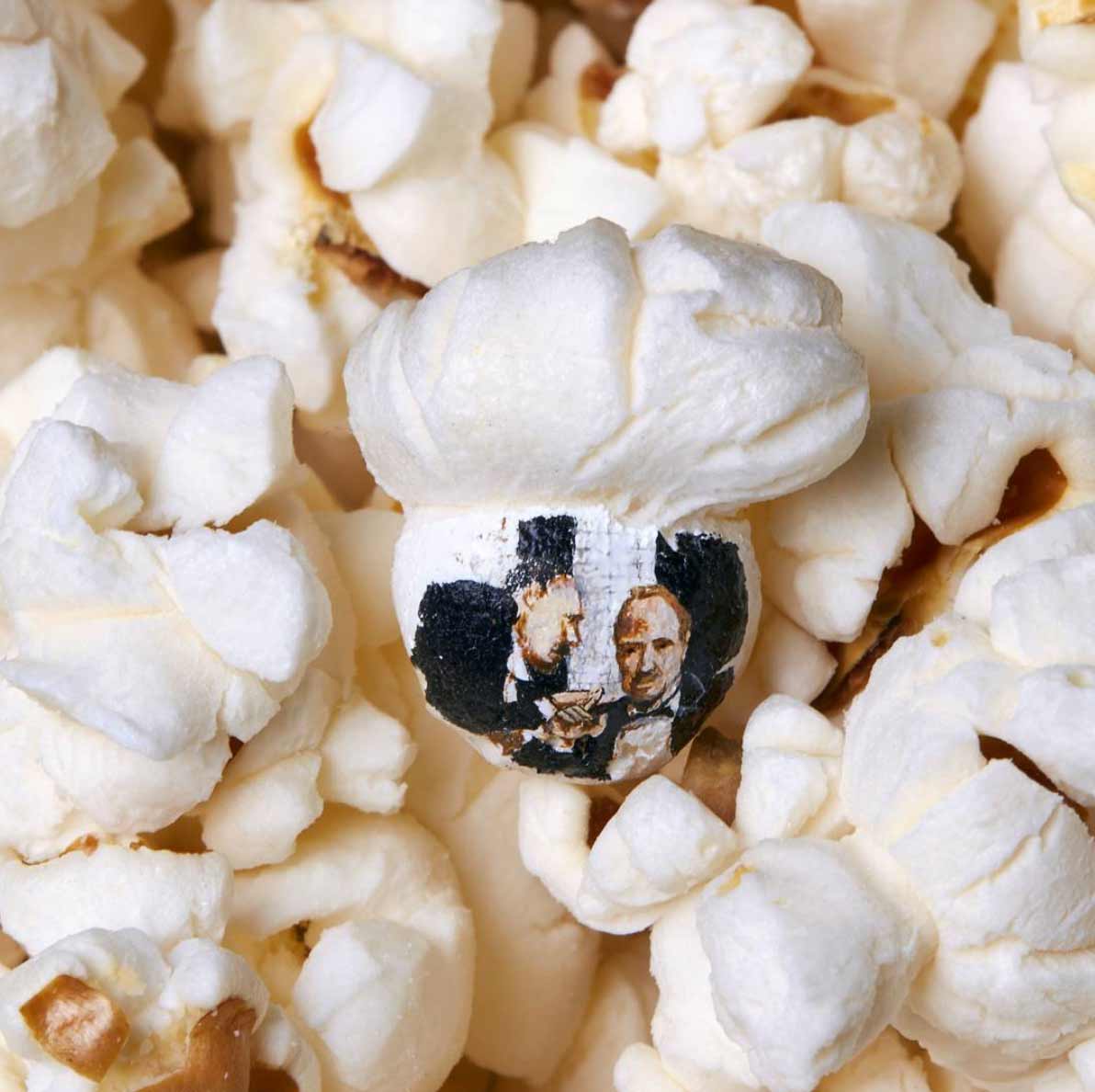 Die Gemälde im Kleinstformat von Hasan Kale hatte ich euch vor ziemlich genau einem Jahr bereits gezeigt. Jetzt hat der Künstler aus der Türkei ein neues Medium für sich entdeckt: Popcorn. Auf den kleinen, gepufften Maiskörnern stellt er szenische Motive aus seinen liebsten Kinostreifen dar. Beeindruckende Raumnutzung!