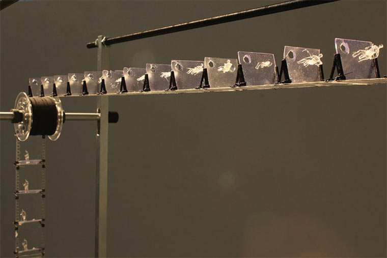 Wow, das nenne ich mal kreativ und originell! Die französische Künstlerin Julien Maire hat 85 kleine Figuren 3D-gedruckt und in einer Konstruktion abgebracht, die einen Filmprojektor bespeist. Der lichtdurchflutet die halbtransparenten Figuren, die ihren plastischen Effekt auf die Leinwand übertragen.