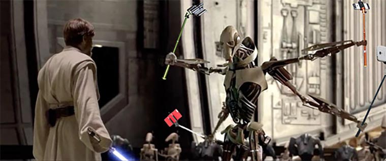 Wie sich die Zeiten doch ändern. Vor drei Jahren hatte ich noch Daumen nach Oben anstelle von Waffen – jetzt gibt es überall diese dämlichen Selfie-Sticks zu sehen. Scheint eher ein kleiner Web-Trend denn die Umsetzung einer Person zu sein. Aber definitiv eine gute Sache – weniger Waffen, weniger Gewalt, leider dann aber auch deutlich weniger Spannung. Ich stelle mir die finale Szene in Reservoir Dogs vor, wenn alle drohen, ein Foto zu machen…
