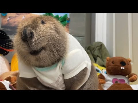 Richtig gemütlich hat es auch dieser Bieber in seinem kleinen Baumwoll-Strampler: