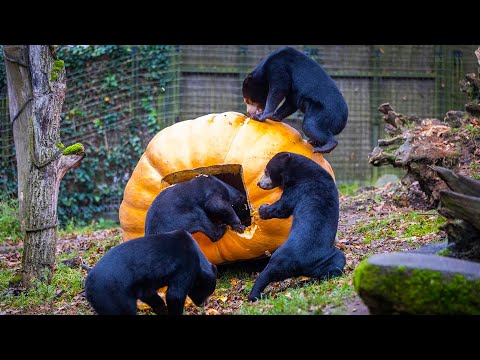 Donnerstag ist ja Halloween, da sollen auch die Tiere was von haben – zum Beispiel einen gigantischen(!) Kürbis!