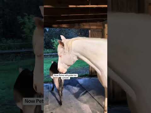 Auf, auf, ihr müden Hasen – der Esel hat geblasen! Äh, naja, so ähnlich. Hier ein sehender Esel, der ein blindes Pferd weckt und zur Weide hinaus geleitet::