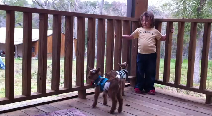 Herumspringende Babyziegen hatte ich bereits letztes Jahr hier. Aber davon kann man ja eigentlich nie genug von bekommen. Und die hier haben sogar kleine Pullover an. Awwwwww!