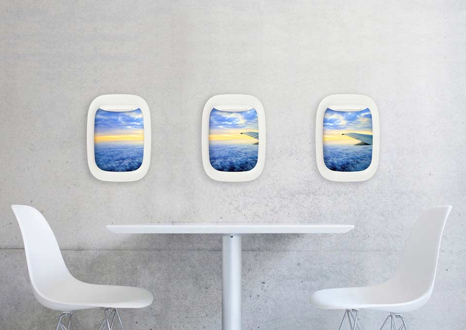 Nette Idee der koreanischen Marke TEEV, die Bilder im Flugzeugfensterlook an die Wand bringen. Dabei stört mich zwar an den Promo-Bildern, dass der Flügel des Flugzeuges in mehreren Bildern versetzt zu sehen ist, aber an sich ist da schon ordentlich Potenzial drin. Wenn das jetzt noch LED-Screens wären, die Bilder von Flügen zeigen könnten, wäre das der absolute Hammer!