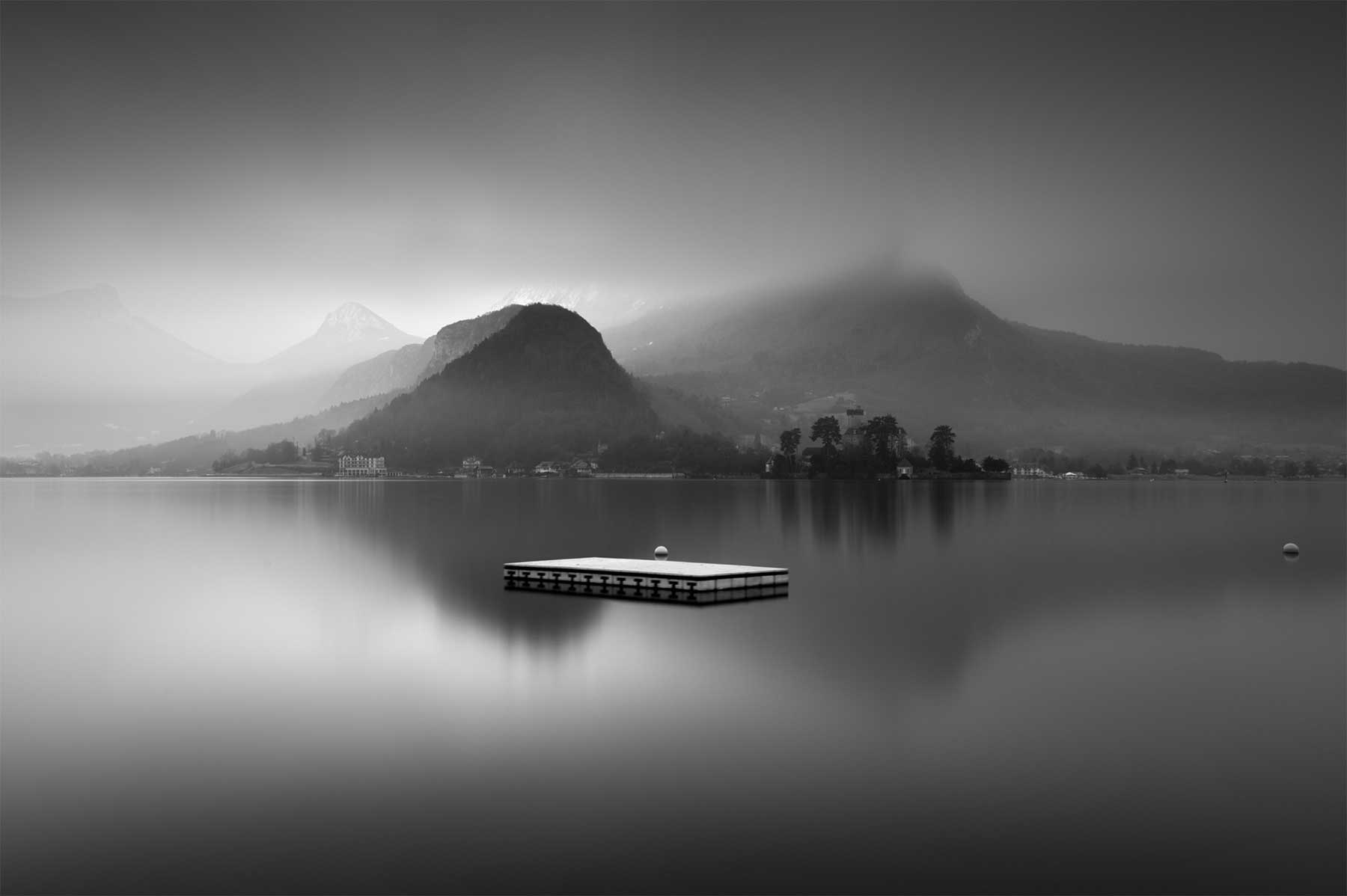 „I have always loved those autumn and winter days at Annecy Lake, when the fog seems to last forever, covering everything with its coat. Sometimes a brief interval of light reveals the mountains, the landscape finally seems to come alive, before falling back into a silence that is interrupted only by the cry of the birds. I like to arrive there very early in the morning, before dawn, to prepare my equipment and choose the best angle of view, smoking a cigarette in the biting cold, waiting for the first light. Nothing can replace these moments of princely peace where, for a time, I am in harmony with everything that surrounds me.“