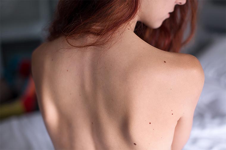 Nackte Haut mit Muttermalen und Sommersprossen, eine leicht verdrehte Kopfhaltung und diese gewisse Eleganz einer Rückenpartie. Wundervolle Serie mit dem Namen Behind vom Fotografi chill aus Straßburg mit einigen sehr schönen Motiven.