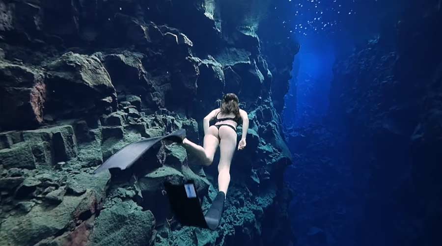 Jedes Jahr erweitert sich der Spalt zwischen der eurasischen und der nordamerikanischen Kontinentalplatte um zwei Zentimeter. Die Bewegungen bekommen wir meist gar nicht mit, wenn, dann durch Erdbeben oder Vulkanausbrüche. Ein Gutes hat es aber: Kiki Bosch kann dort Tauchen und Ocean Imaging hat das Ganze gefilmt. Was wie ein entspannter Sommerausflug ausschaut, ist übrigens bittere Kälte. Das Wasser ist etwa zwei Grad Kalt…