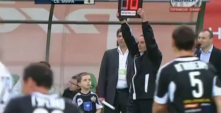 Ganz tolle Aktion! Der fünf-jährige Hrisan Dzheus wird bei einem Freundschaftsspiel der russischen Erstligisten eingewechselt. Und schießt prompt ein Tor. Die Aktion gilt als Dank für den Vater des Filius, der Leiter der russischen Kinderzentren ist. Sweet.