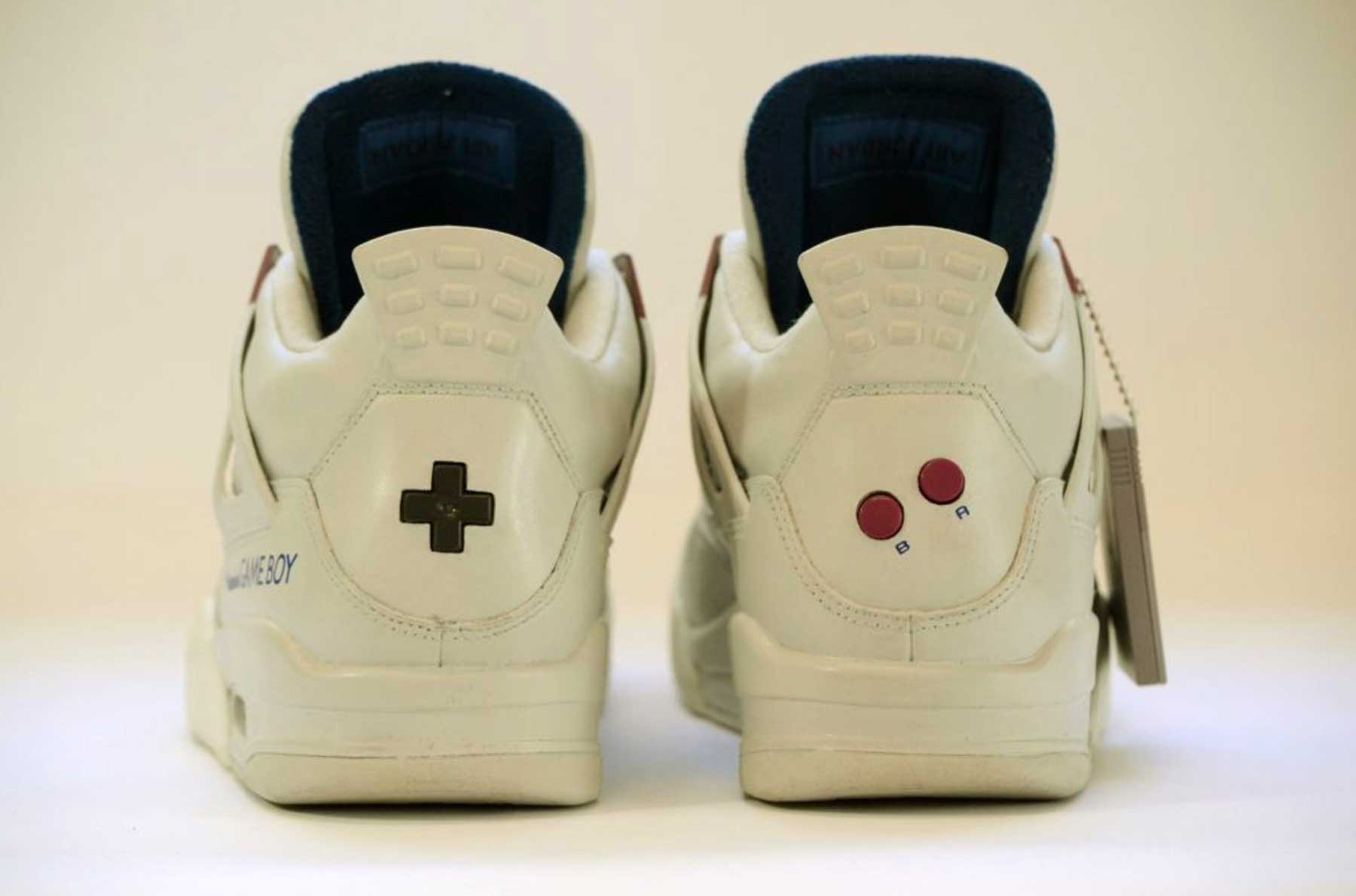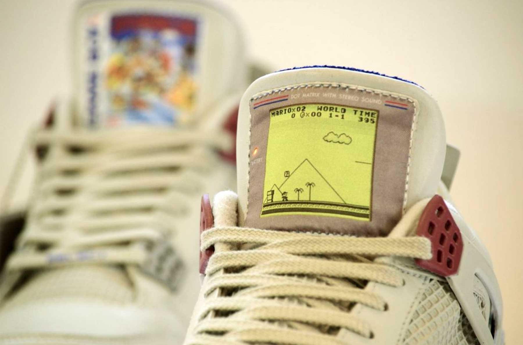 „In the year 1989, arguably two of the most iconic products were introduced to popular culture. The Air Jordan IV and the Nintendo GAME BOY. This handheld console sold almost 120 million units and provided hours upon hours of joy for kids and grown-ups worldwide. Many classic games were available but personally, Super Mario Land holds a special place in my heart as i’m sure it does with millions of others. This pair features an actual game cartridge as the hang tag and the buttons and D-pad are of course pressable.“