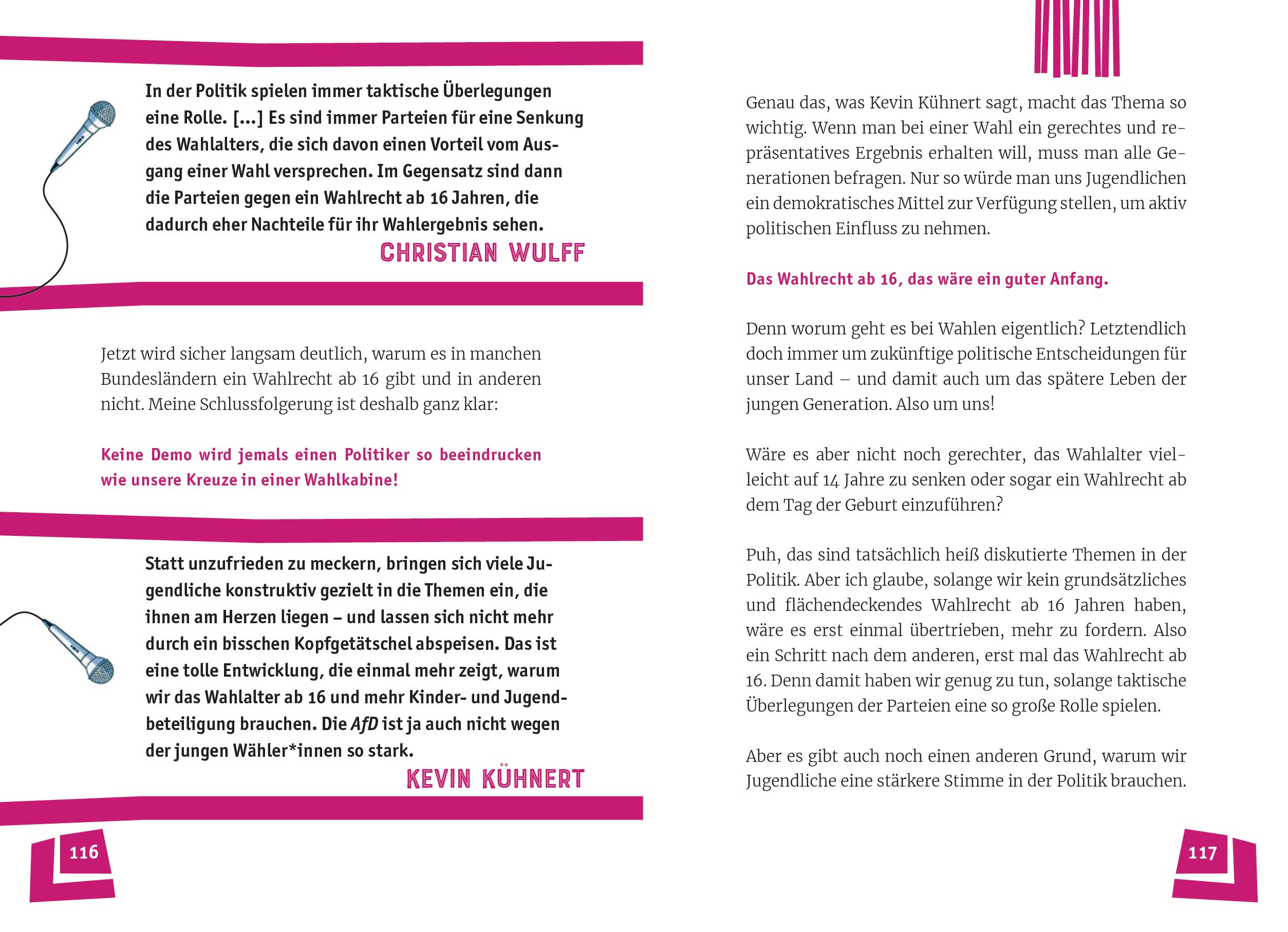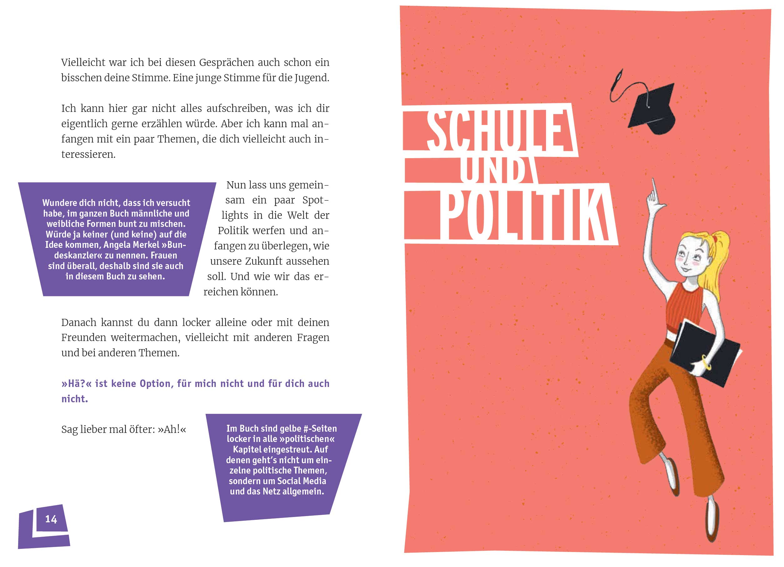 Bildung, Demokratie und Klimaschutz stehen in meinem Buch im Fokus. Es ist so etwas wie ein Handbuch für alle, die durchblicken und mitreden wollen, randvoll mit Wissen, Fun Facts, Interviews und Challenges. Also, was erfahrt ihr alles in meinem Buch?