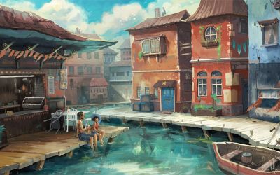„You are the yellow marble on the rafting track. Good luck on the dangerous track. There are already some crashed.“