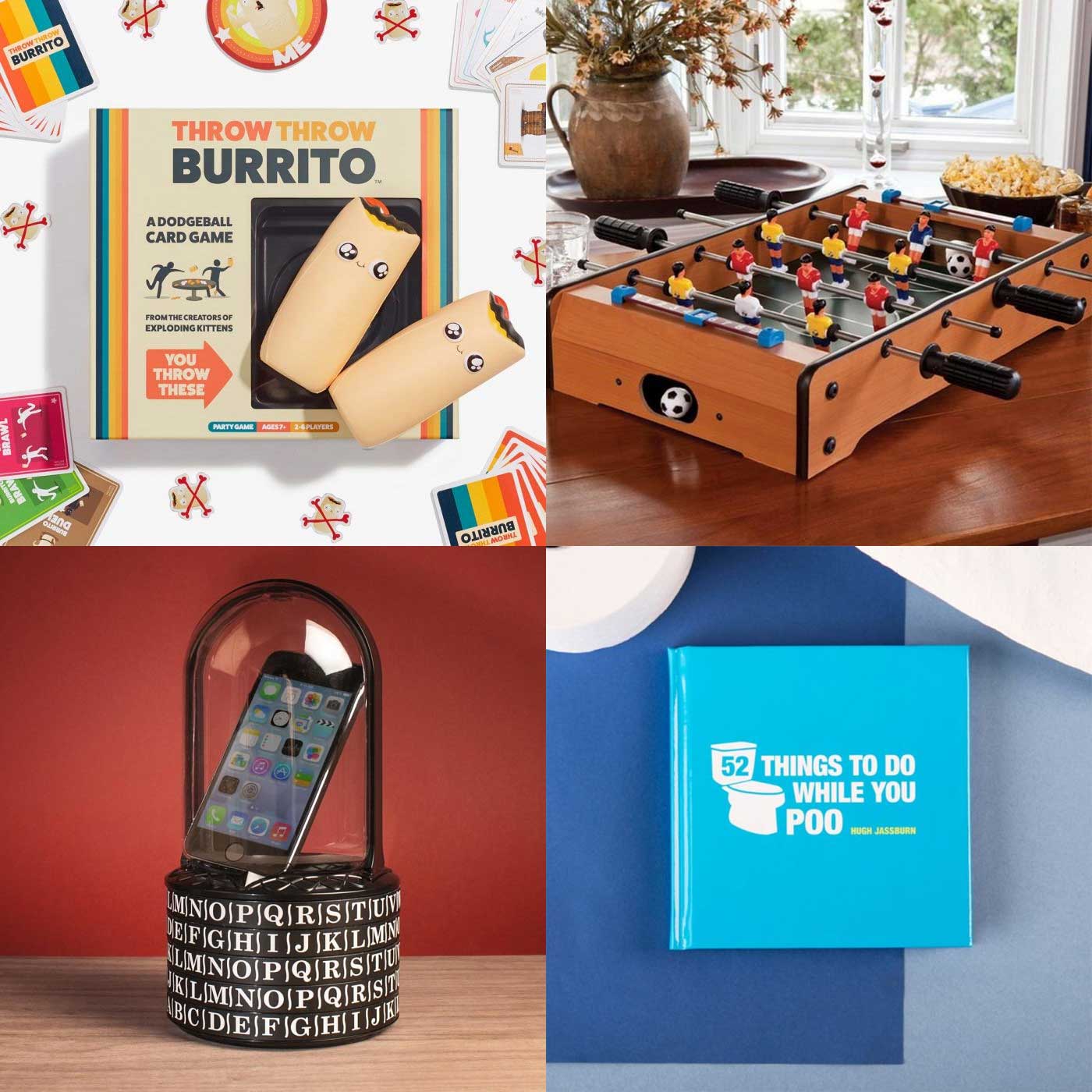 Spiel und Spaß gibt es zuhauf zu finden. Klassiker gibt es mit dem Miniatur-Tischkicker oder dem Retro-Basketball-Spiel in die Hände. Modernen analogen Spielspaß gibt es mit Exploding Kittens und Throw-Throw Burrito auf den Tisch, auf dem ihr auch eure neue Minecraft-Block-Leuchte hinstellen könnt.