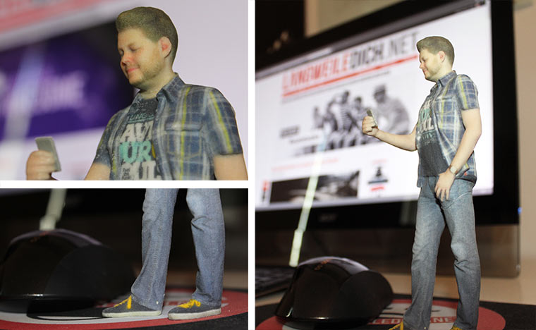 Schon skurril – seit einigen Tagen beobachte ich mich quasi selbst beim Bloggen. Okay, eine Miniaturausgabe meiner selbst, und eigentlich starrt die auch nur die ganze Zeit auf ihr Smartphone. Typisch Blogger halt! Ebenso typisch für Blogger ist das Aufspüren neuer Trends. Ein ganz aktueller ist das 3D-Drucken ganzer Personen. Natürlich im kleinen Maßstab. Das habe ich beim Münchener Anbieter youlittle getestet. Das Ergebnis – meinen kleinen Mini-Me – könnt ihr ebenso hier bestaunen, wie andere Beispielarbeiten. Und ihr könnt mit etwas Glück schon bald euch selbst in Händen halten!