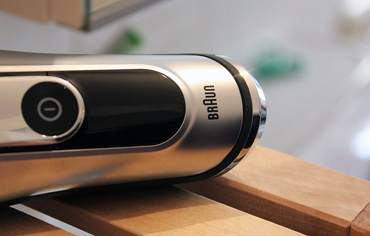 60 Ingenieure und Wissenschaftler, 5 Jahre Entwicklungszeit und 400 perfekt synchronisierte Einzelteile – das Ergebnis ist der Braun Series 9, das aktuelle Rasur-Schlachtschiff schlechthin. Ich finde, dass er verdammt gut in der Hand liegt – robust und „schwertig“, aber eben nicht zu belastend. Dazu gefällt mir das solide und saubere Design sehr.