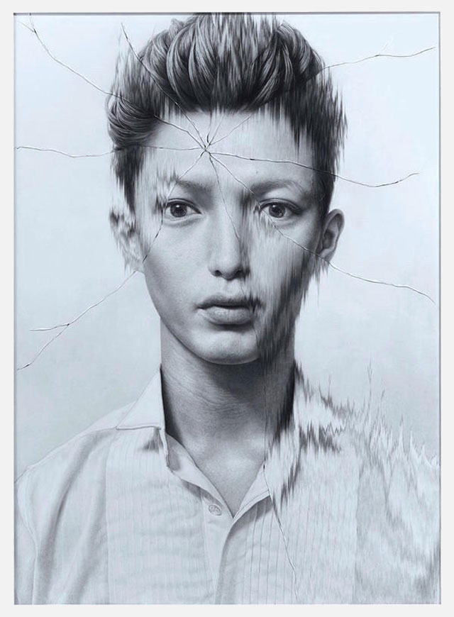Was auf den ersten Blick aussieht wie ein Ungeschick, das je nach Auslegung sieben Jahre Pech, Glück oder schlechten Sex einbringt, ist in Wirklichkeit einfach nur eine Zeichnung. Platt und auf Papier, ohne Glas davor. Das heißt, vielleicht rahmt sie sich Künstler Taisuke Mohri oder einer seiner Käufer ein, damit es entsprechend an der heimischen Wand zur Geltung kommt. Und Betrachter ins Grübeln kommen…