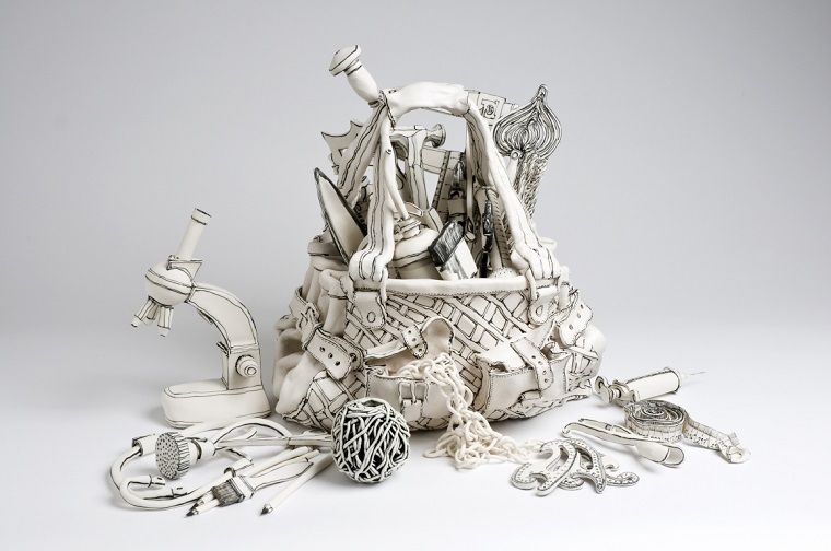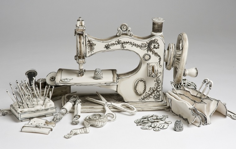 Eigentlich wollte Katharine Morling Psychologie studieren, irgendwie ist sie dann aber an einen Abschluss im Royal College of Art, Ceramics and Glass Department gelangt. Entsprechend sind auch ihre Kunstwerke aus Porzellan. Aber sie sehen keinesfalls so aus, eher wie papierne 3D-Zeichnungen oder ausgefüllte Kissenformen. Was ein paar gekonnt eingesetzte Linien so anrichten können mit unserer Wahrnehmung…