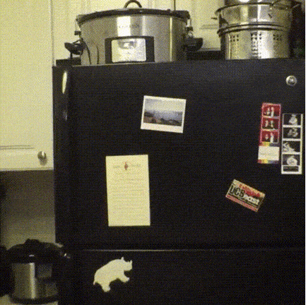 Hintergrund-Erklärung: Manchmal sind es die unvorhergesehenen heldenhaften Taten jener, die eigentlich gar nicht für den Job vorgesehen waren. HHier sehen wir einen Eishockey-Feldspieler, der sein Team, das zuvor den Torwart ausgetauscht zu haben scheint, im heroischen Flug vor einem weiteren Gegentreffer bewahrt. Was für ein Moment des Sports! Der lässt sich aber auch – wie eigentlich jedes GIF – wunderbar auf etwaige andere Dinge des Lebens ableiten. Vielleicht haben wir hier das Bildnis für den großen Milliardenschuss für Klientelpolitik und Wählerbeschiss der CDU/CSU/SPD, der gerade so noch von den Grünen abgewehrt wird? Oder wir sehen, wie Jahn-Regensburg-Keeper Pollersbeck im Interview gerade noch so die Kurve gekriegt hat. Oder ein Paket auf dem Weg an die heimische Adresse, an der man bereits den ganzen Tag sehnsüchtig auf dessen Ankunft gewartet hat, kurz vor dem Ziel abgefälscht von einem „Wir haben Sie nicht antreffen können“-Zettel im Briefkasten. Deutlich bessere Ablenkung als dieser Schuss erhaltet ihr mit der dieswöchigen Wackelbilderparade (Mist, das wäre auch ein guter Name für diese Rubrik gewesen, merke ich gerade…!).
