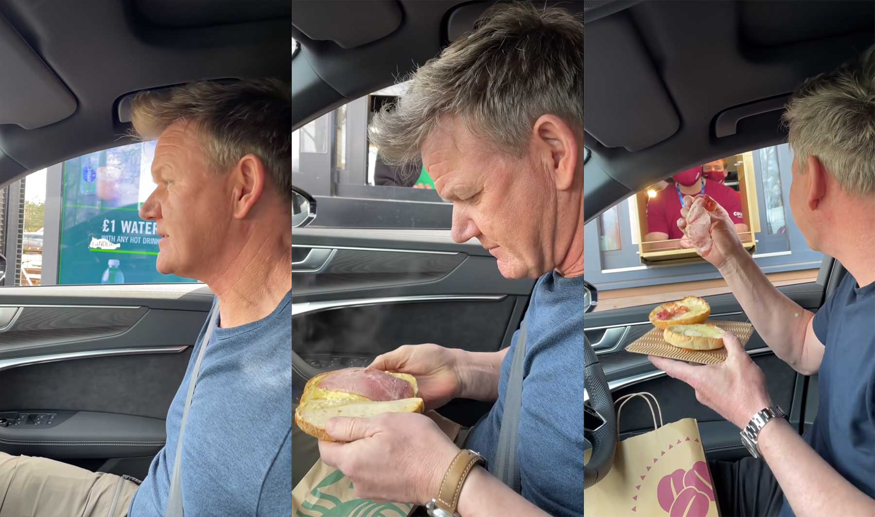 Star-Koch Gordon Ramsay schreibt im folgenden Video von „Best Drive-Thru Pranks“, dabei würde ich die Aktionen eher als kleine Überraschungs-Späße denn wirkliche Streiche betiteln. Aber er fährt in Drive-Thrus, bestellt picky Essen und macht danach eine nicht ganz ernst gemeinte Mini-Kritik. Passt schon!