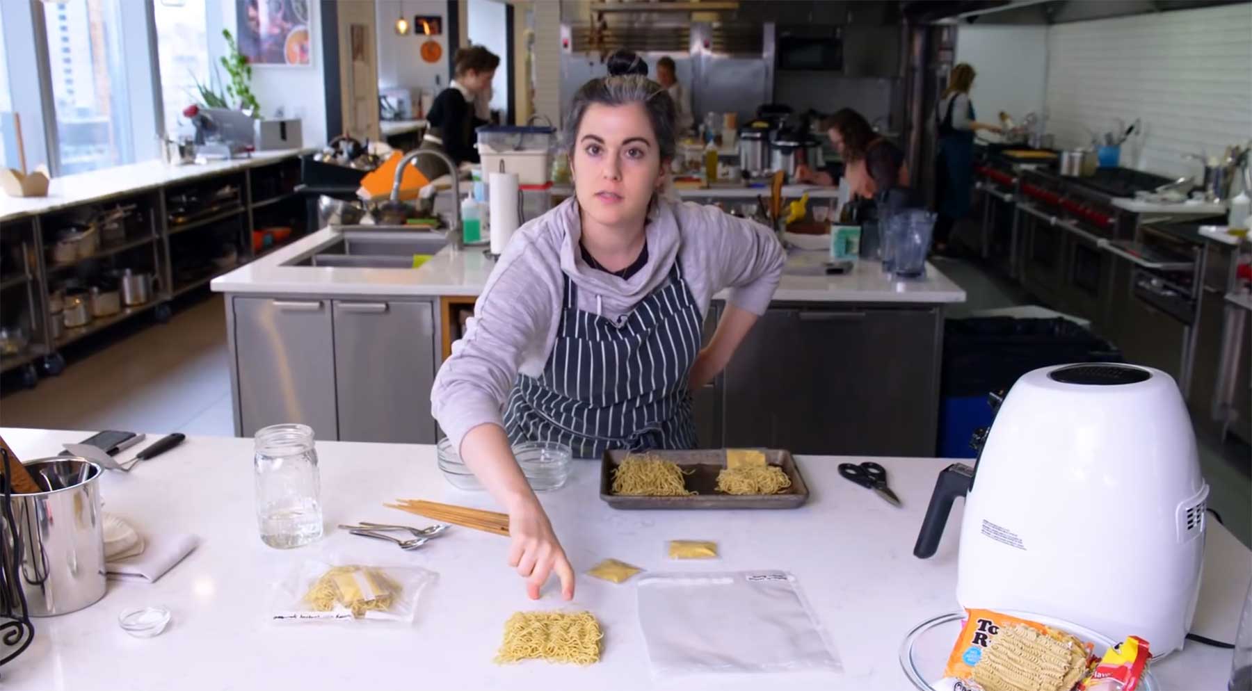 „Claire. Is. Back. AGAIN. And this time she is attempting to make gourmet instant ramen. Everybody loves instant ramen, with its ludicrously salty, umami-rich spice packets and its impossibly wavy fried noodle bricks. Can Claire make a fancy version of this 70%-of-your-daily-sodium snack?“