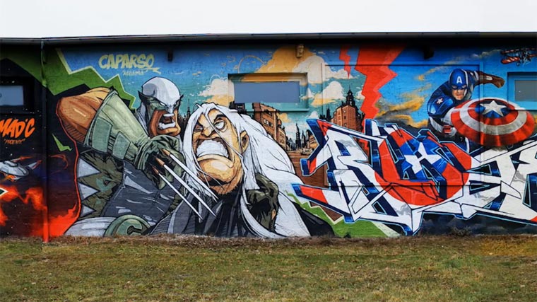 Schönes Ding von den Bandits aus Dresden. Eine Wand voller Superhelden, dazu fein im Video die Entstehung dokumentiert.
