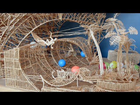 Künstler Scott Weaver erstellt seit rund 50 Jahren Skulpturen aus Zahnstochern. Mit dem Exploratorium hat er ein seitdem anwachsendes Bauwerk geschaffen, das gleichsam auch als eine Art Murmelbahn funktioniert. Beeindruckend!