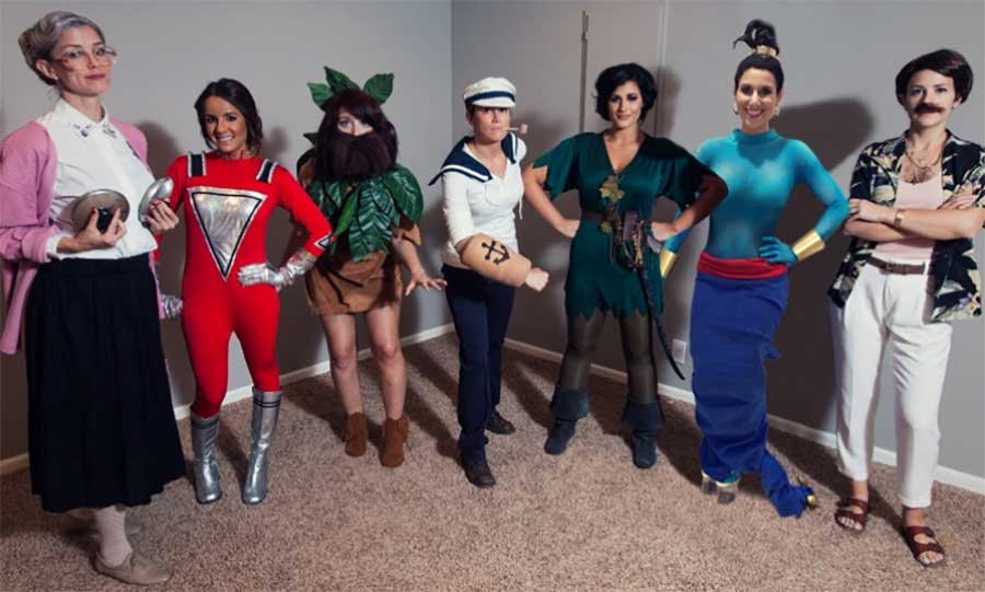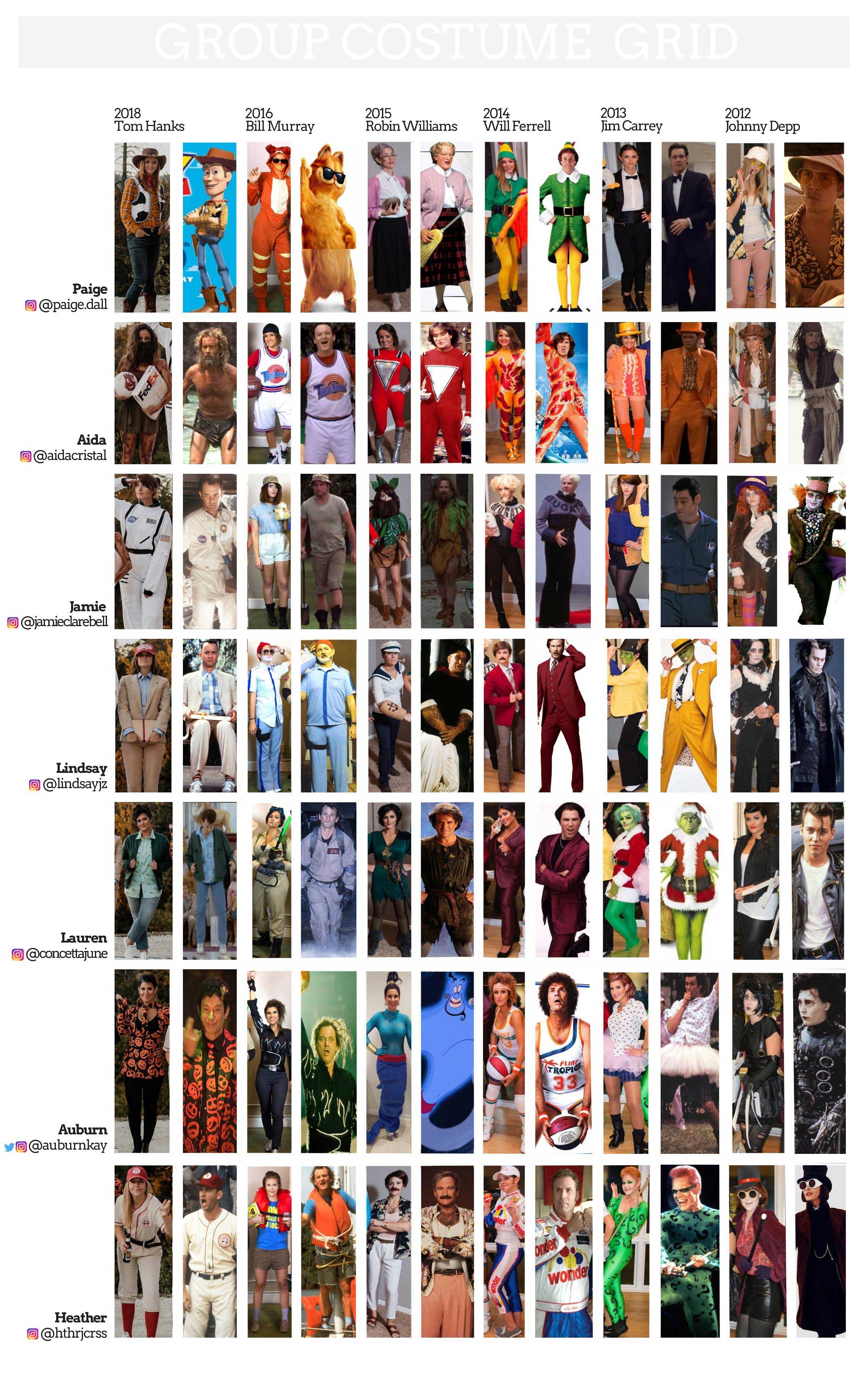 Was für eine tolle Tradition! Seit acht Jahren veranstalten Jamie Bell und ihre Freundinnen ein ganz besonderes Gruppenkostüm zu Halloween. Jedes Jahr suchen sie sich einen bekannten Schauspieler (wieso eigentlich nie eine Frau..?!) und stellen diverse Rollen seiner bisherigen Laufbahn nach. So gibt es dieses Jahr den siebenfachen Tom Hanks, der uns in seinen Rollen aus „Toy Story“, „Castaway“, „Apollo 13“, „Forrest Gump“, „Big“, „SNL“ (David S. Pumpkins) und „A League of Their Own“ erscheint. Vor allem finde ich super, dass Leute das Gruppenkostüm an sich erstmal erraten müssen und selbst, wenn sie von der Tradition wissen, jedes Jahr aufs Neue den entsprechenden Promi erraten können. Dazu findet sich viel Liebe zum Detail in den Kostümen. Klasse!