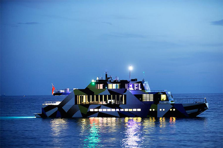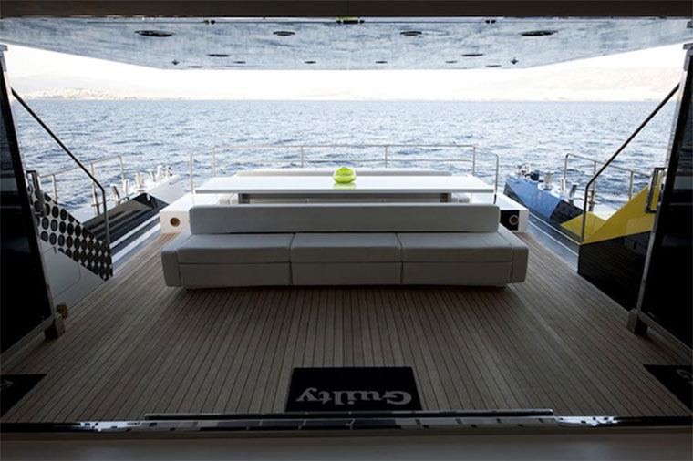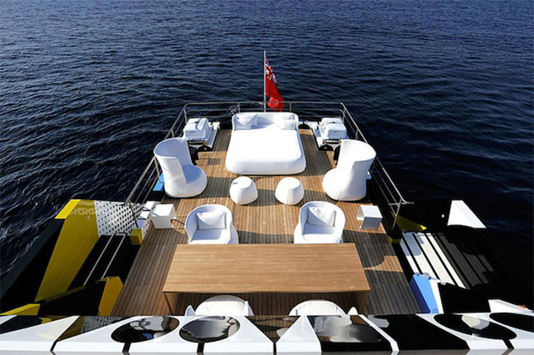 Was für ein Bötchen. Künstler Jeff Koons hat gemeinsam mit der iatlienischen Yacht-Designerin Ivana Porfiri diese Prunkstück entworfen, das auf den Namen Guilty hört. Eine 35-Meter-Yacht, die jetzt in Besitz des griechischen Industriellen Dakis Joannou liegt. Dürfte der Hingucker in jedem Hafen sein, dank des modernen und knallbunten Militärmusters.