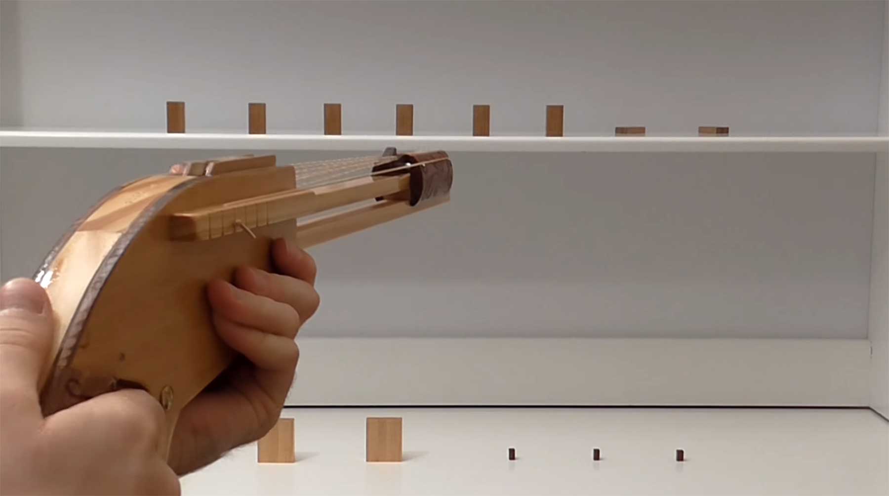 Wer beim Bürokampf so richtig auftrumpfen möchte, aber kein unnötiges Geld in Plastik-Nerf-08/15-Wummen investieren möchte, der kann mit dieser feinen kleinen Erfindung von parabellum1262 aufwarten, die präzise mehrere Schuss Gummiband zu bieten hat. Bei dieser mechanisch ausgetüftelten Variante imponiert mir vor allem der magazinartige Austausch der Munition mittels kleiner vorbereiteter Papp-Einheiten.