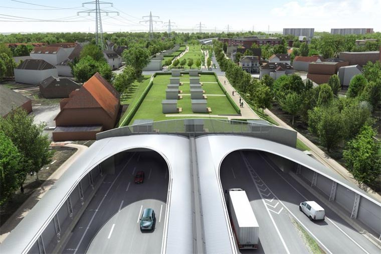 Etwa 150.000 PKWs und LKWs fahren täglich über die A7 in Schnelsen. Grund genug für die Bürger Hamburgs die Initiative Ohne Dach ist Krach zu gründen. Das ist mittlerweile bereits Jahre her – hat jetzt aber endlich Früchte getragen. Denn ein Großprojekt wird jetzt tatsächlich umgesetzt. Der Hamburger Deckel soll einige Kilometer der A7 überdachen. Das birgt nicht nur Lärmschutz-Potenzial sondern auch die Möglichkeit, das Stadtbild deutliche zu vergrünen.