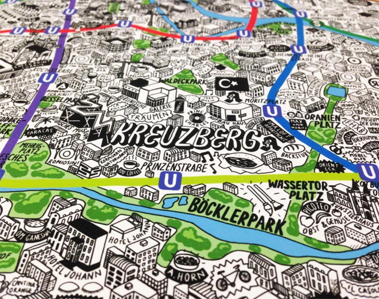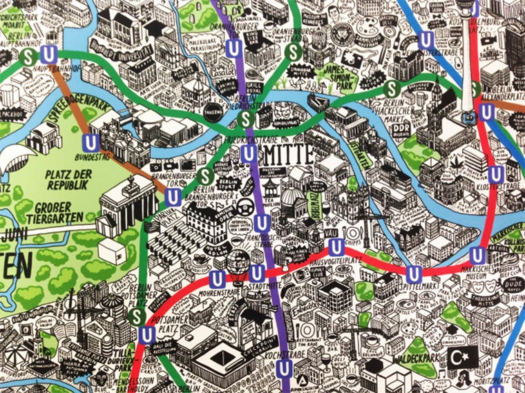 Bekannte Gebäude, popkulturelle Ereignisse, heraus recherchierte Fakten und Hot Spots. Die liebevoll illustrierten Karten der britischen Künstlerin Jenni Sparks bietet nicht nur geografische Orientierung sondern eben auch allerlei Zusatz-Informationen. Und sie sehen vor allem sehr schick aus. So werden die Straßenbilder von Berlin, London, Paris oder auch New York zu dekorierender Kunst und lassen dieses Google Maps enorm alt aussehen.