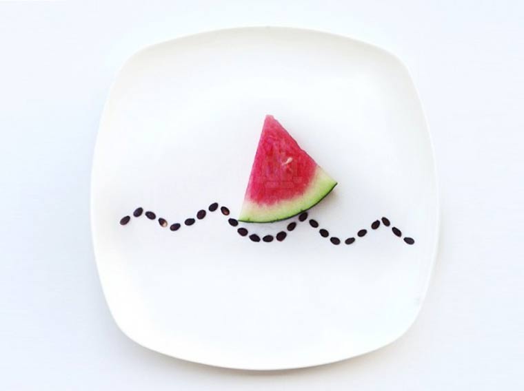 Ich hatte mal die Kaffeeringbilder von Hong Yi verlinkt. Mit dieser Sache hat sie sich aber einen eigenen Beitrag hier verdient. Schon alleine, weil sie sich vermutlich stark gegen elterliche „mit Essen spielt man nicht!“-Sprüche durchsetzen musste. Denn sie ordnet Zutaten derart auf dem Teller an, dass ein kleines Bild entsteht.