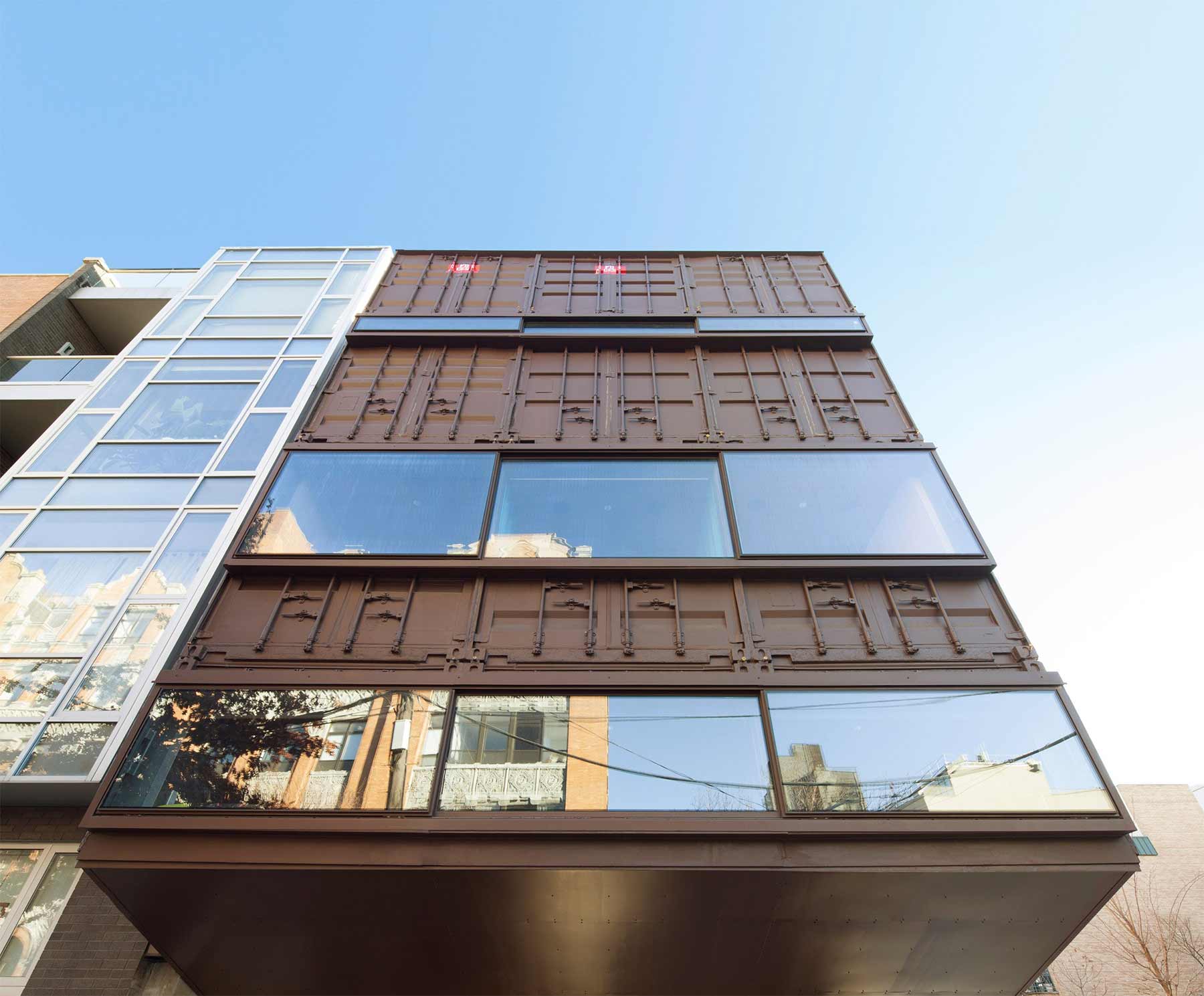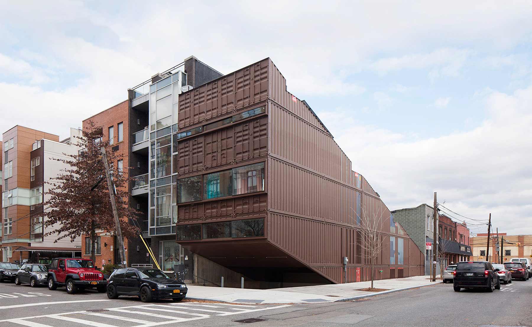 2012 hat Lot-Ek für das Ehepaar Joe und Kim Carroll 21 Stahlcontainer aneinandergereiht und in einer Diagonalen verschnitten. Das „Carroll House“ steht seit 2016 in Brooklyn und bietet rund 464 Quadratmeter verdammt eindrucksvoller Wohnfläche. Interessant finde ich dabei auch den Ansatz, Versatzstücke des unteren Container auf die oberen zu setzen – smart!