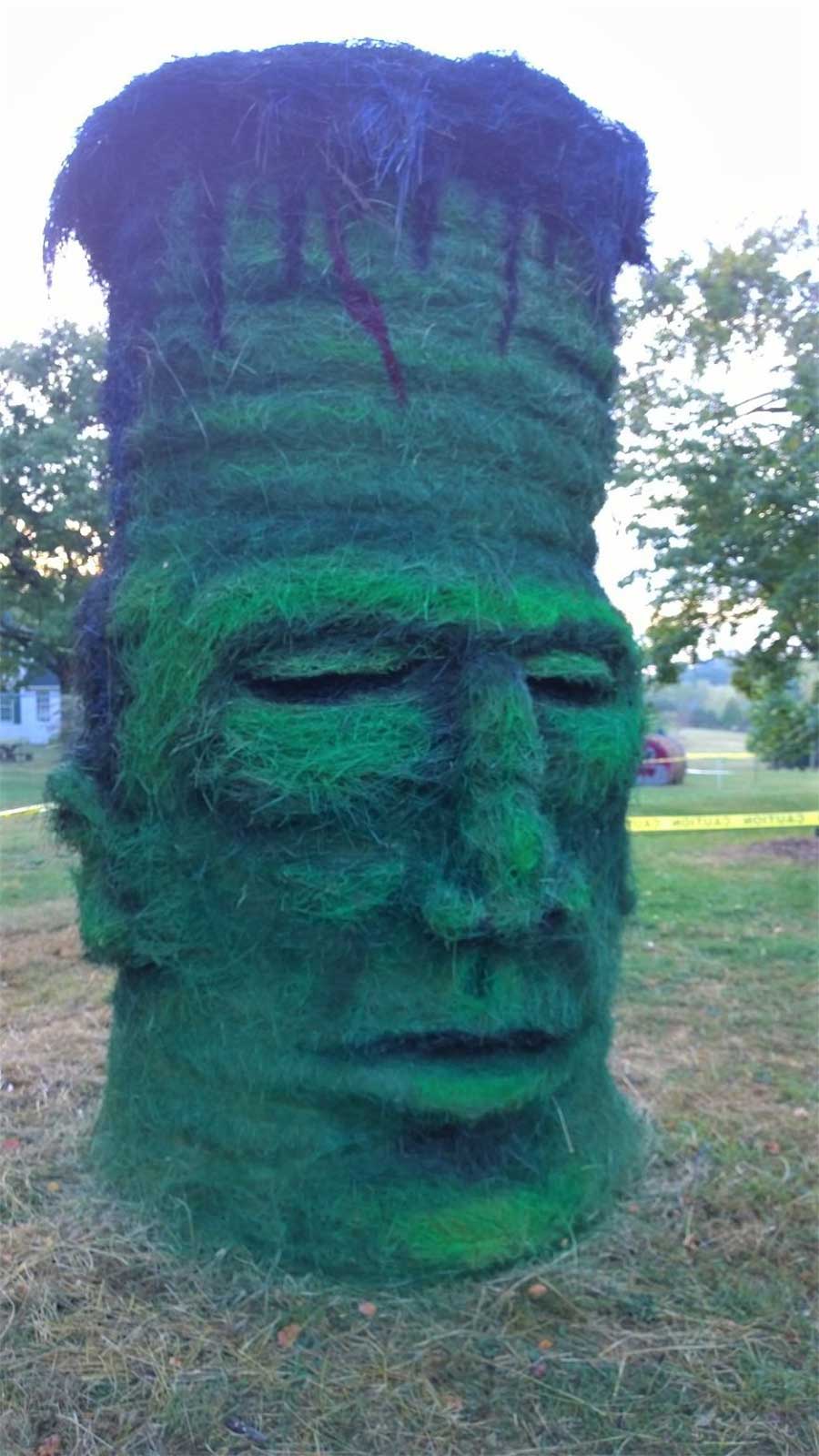 „After reviewing popular trends and interviewing friends and family, I finally settled on which characters I would use. My criteria include one book character, one iconic cartoon character, and something for all ages. Some of the bales are double-stacked, or placed on end or on sides, depending on the character to be sculpted. I so enjoy watching parents and children gather around the bales for photos as they create warm and lasting memories. I love hay bale sculpting so much that I already have plans for next year that include Bert and Ernie from Sesame Street and Smokey the Bear!“