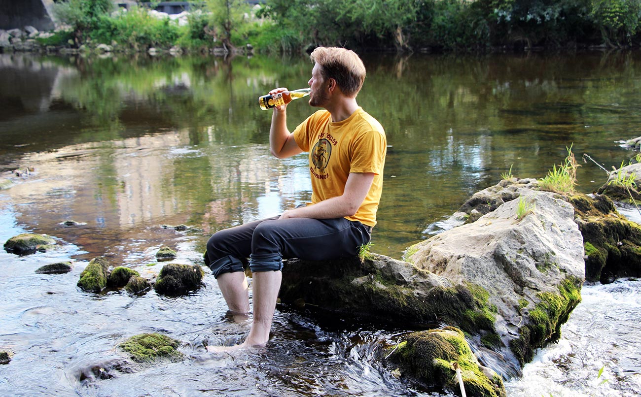 Was wäre Strand ohne Wasser? Nur noch Sand. Und ja, das ist ganz chillig, auf einer Parkdachterrasse zu liegen, aber wirklich erfrischend ist nur das kühle Nass selbst. Vielleicht habt ihr ja Glück und einen Fluss oder Bach oder wasauchimmer in der Nähe, in das ihr eure Füße tunken könnt. Ich habe mich in die Schnellen der Wertach getraut und war begeistert. Man beachte das stilechte Mexiko-Shirt!