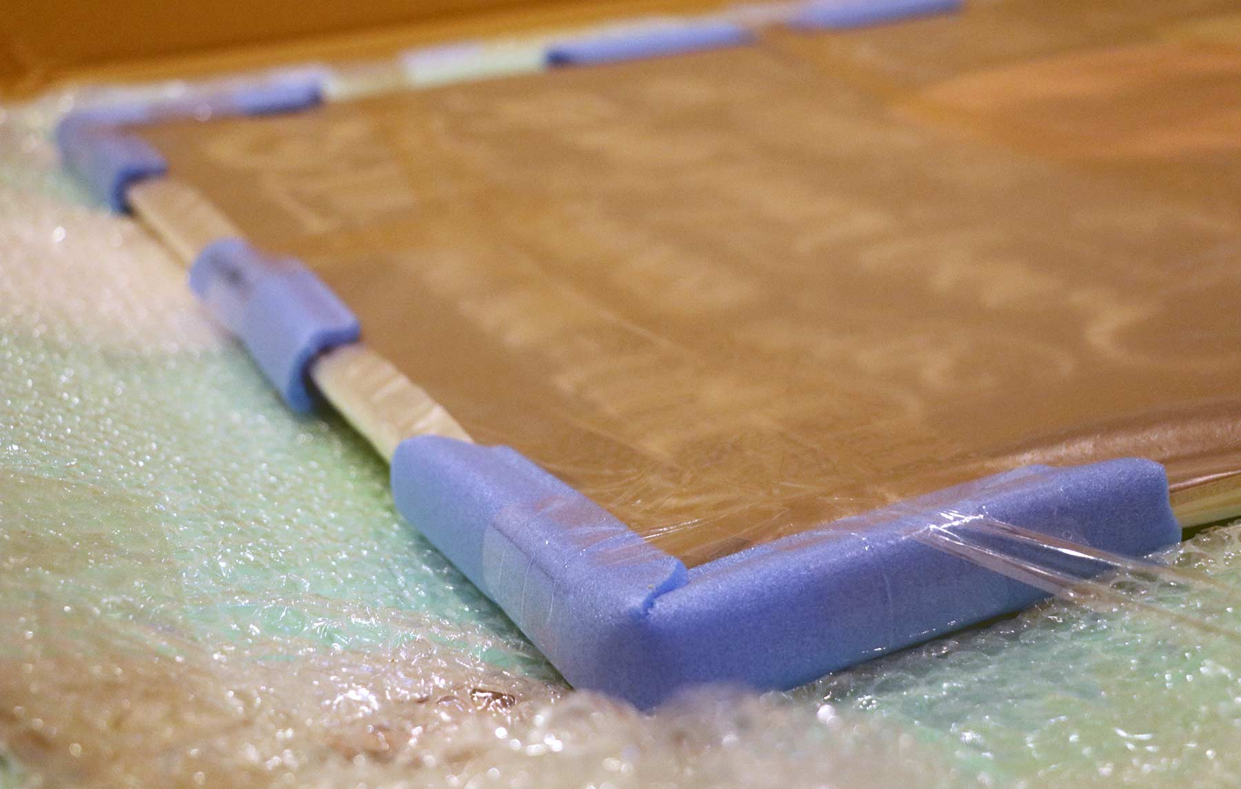 Der Druck hat auch gar nicht lange gedauert und einige Tage später hielt ich das mit lauter Plastiksträngen und Stabilisierungs-Kartonagen versehenen Versandkarton in Händen. Der kommt übrigens europaweit bei jeder Bestellung gratis zu euch! Die Verpackung ist auf jeden Fall auf Sicherheit ausgelegt – das Lieblingsmädchen erfreut sich an massig neuer Luftpolsterfolie (*plopp!*).