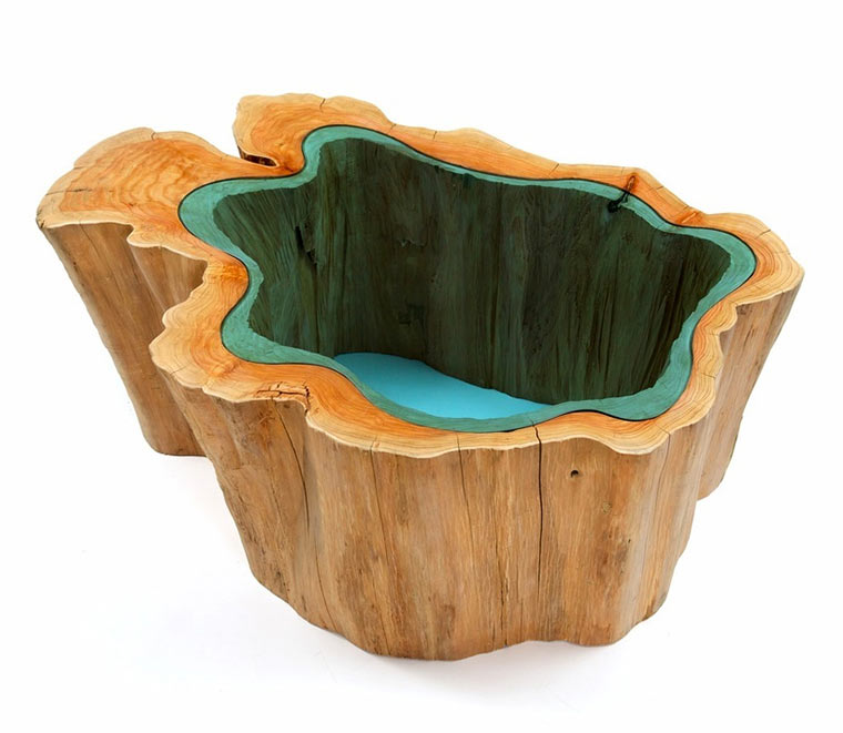 Der Amerikaner Greg Klassen baut gerne kreative Möbel in kompletter Handarbeit. Sehr angetan haben es mir dabei seine Tische aus der so genannten River Collection. Rohe Holztische, die in vereinzelten Segmenten durch Glasplatten ergänzt werden. Diese wirken in der Struktur des Holzes wie hindurchfließende Gewässer. Sehr schöne und ungewöhnliche Kombination. Kann man auch kaufen, da muss man aber schon einmal zwischen drei und neun Tausend Dollar auf den Tisch legen. Oha! Dafür hat man dann ein absolutes Einzelstück.
