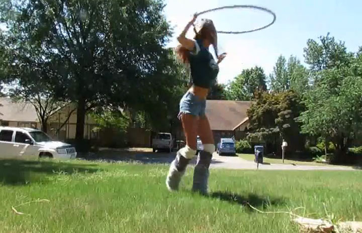 Mit so einem Hula-Hoop-Ring kann man weitaus mehr machen, als ihn um die Taille kreisen zu lassen. Man kann zum Beispiel zwei Ringe gleichzeitig kreisen lassen. Oder man kann drei Ringe gleichzeitig kreisen lassen. Oder vier. Der Fantasie sind dabei nur die Traglasten der jeweiligen Akteure als Grenzen zu setzen… Hier ein paar schicke Tricks, die zum Nachmachen anregen sollen.
