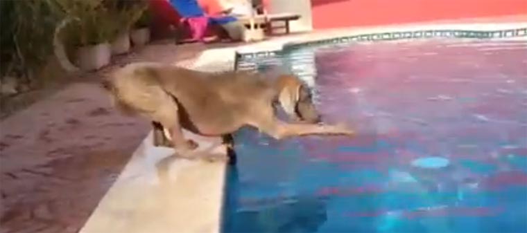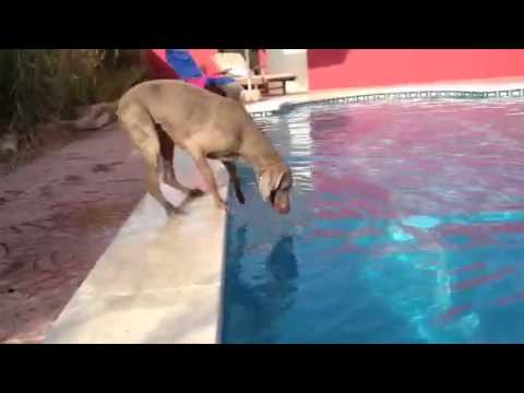 Hündin Maya möchte unbedingt die Frisbee haben. Nur dumm, dass diese mittem im Pool liegt. Und, dass Maya Wasser nicht so wirklich mag. Wird sie es schaffen, das runde Stück Plastik trocken zu fischen?