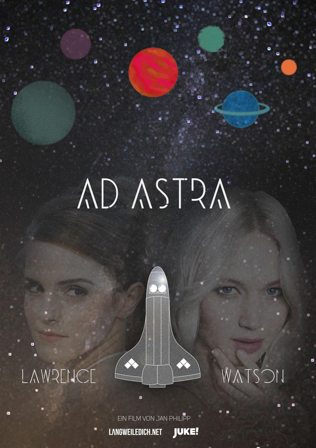 Als Titel des Films vielleicht „Ad Astra“. Beim Filmposter kam mir in den Sinn Jennifer Lawrence wie diese Austronautin (http://i.imgur.com/IQdbd.jpg) darzustellen mit den Blick auf Planeten Galaxien, Sterne, Nebel, oder so. Naja, ich möchte jetzt auch nicht zu viel reinreden, vielleicht bestehen ja noch andere Ideen für die ich offen bin.“